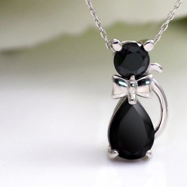 ネコのシルエットが全てジュエルでできた「誕生石 猫モチーフネックレス 天使のクマさんセット」