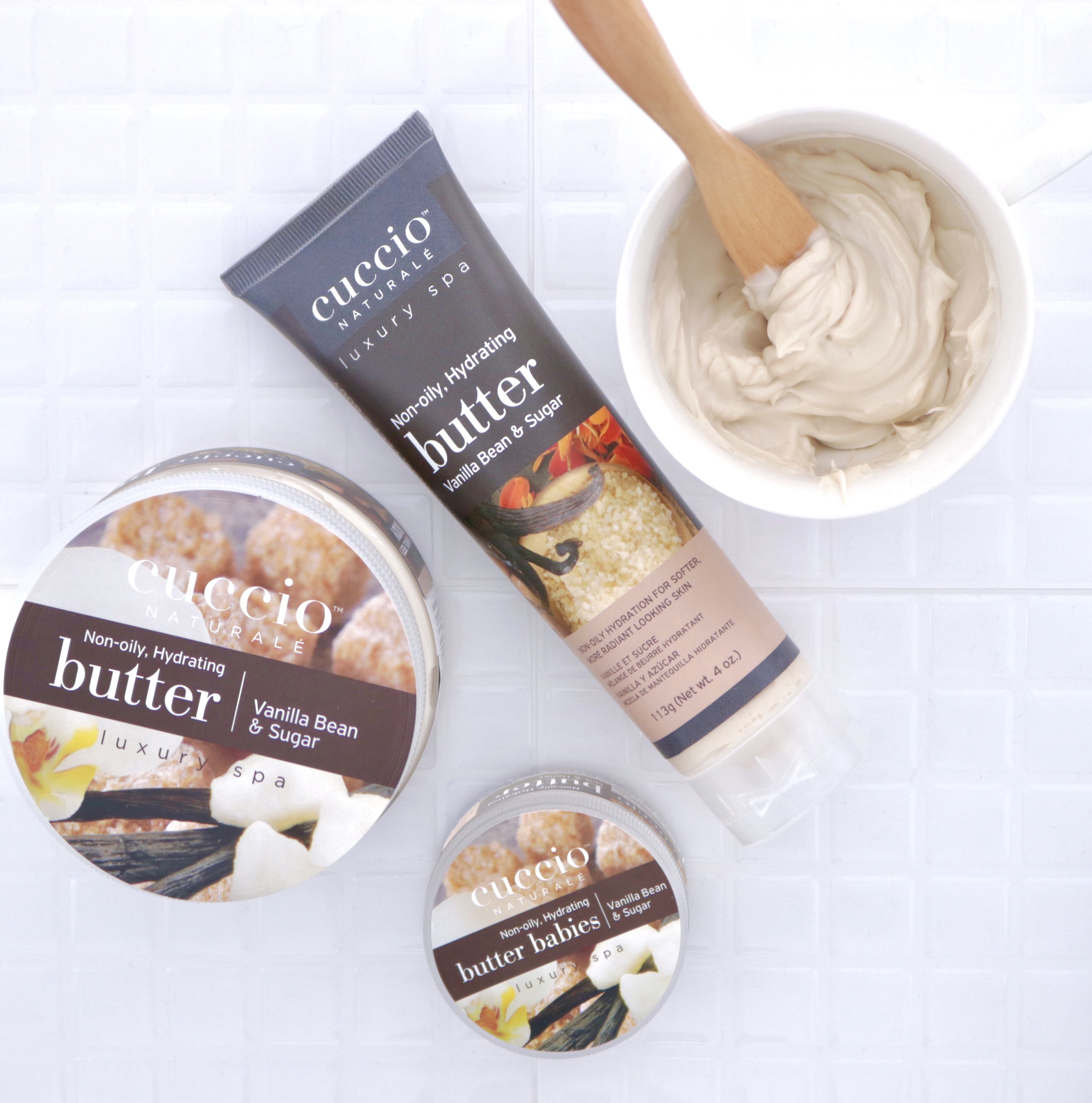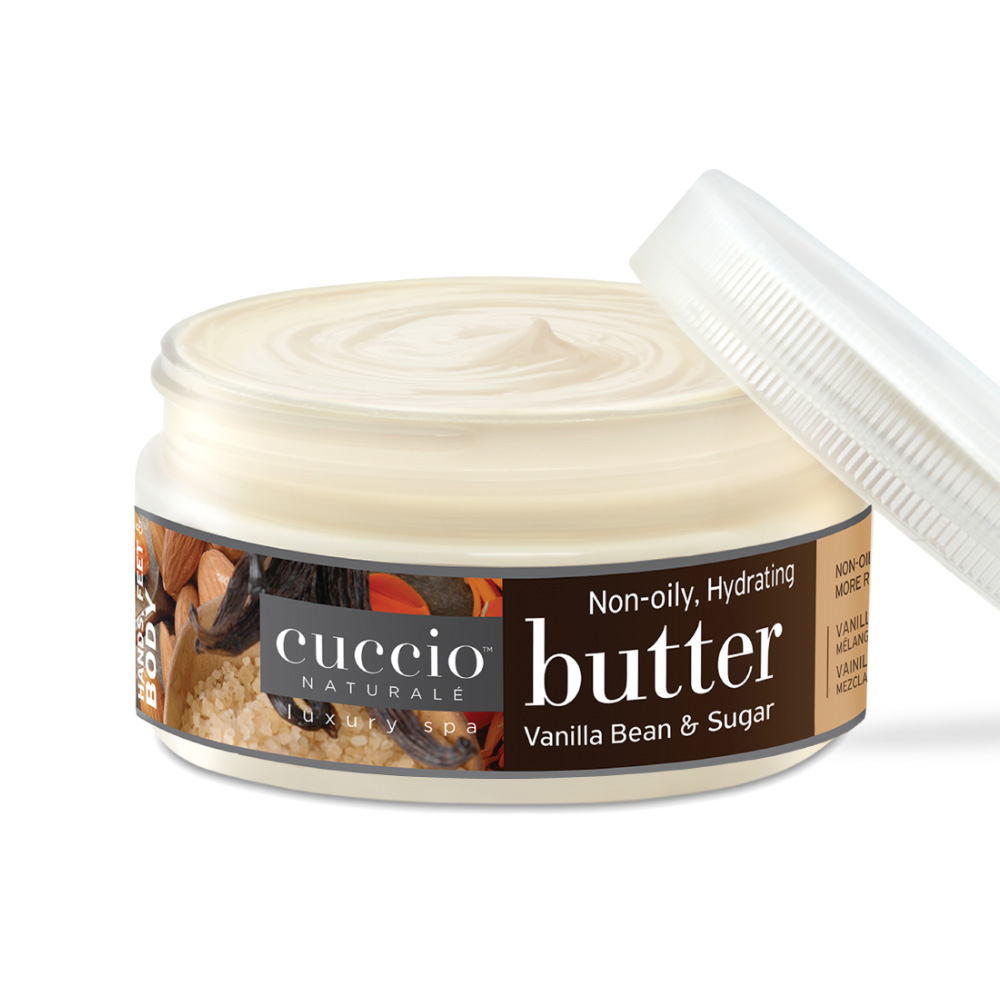 カリフォルニア生まれのオーガニックブランド「cuccio naturale(クシオ ナチュラーレ)」のバターブレンド。バニラビーンエキス、サトウキビエキス配合で、保護膜を作る働きでお肌に潤いを閉じ込め、ふんわり柔らかなキメの細かいお肌へ導きます。