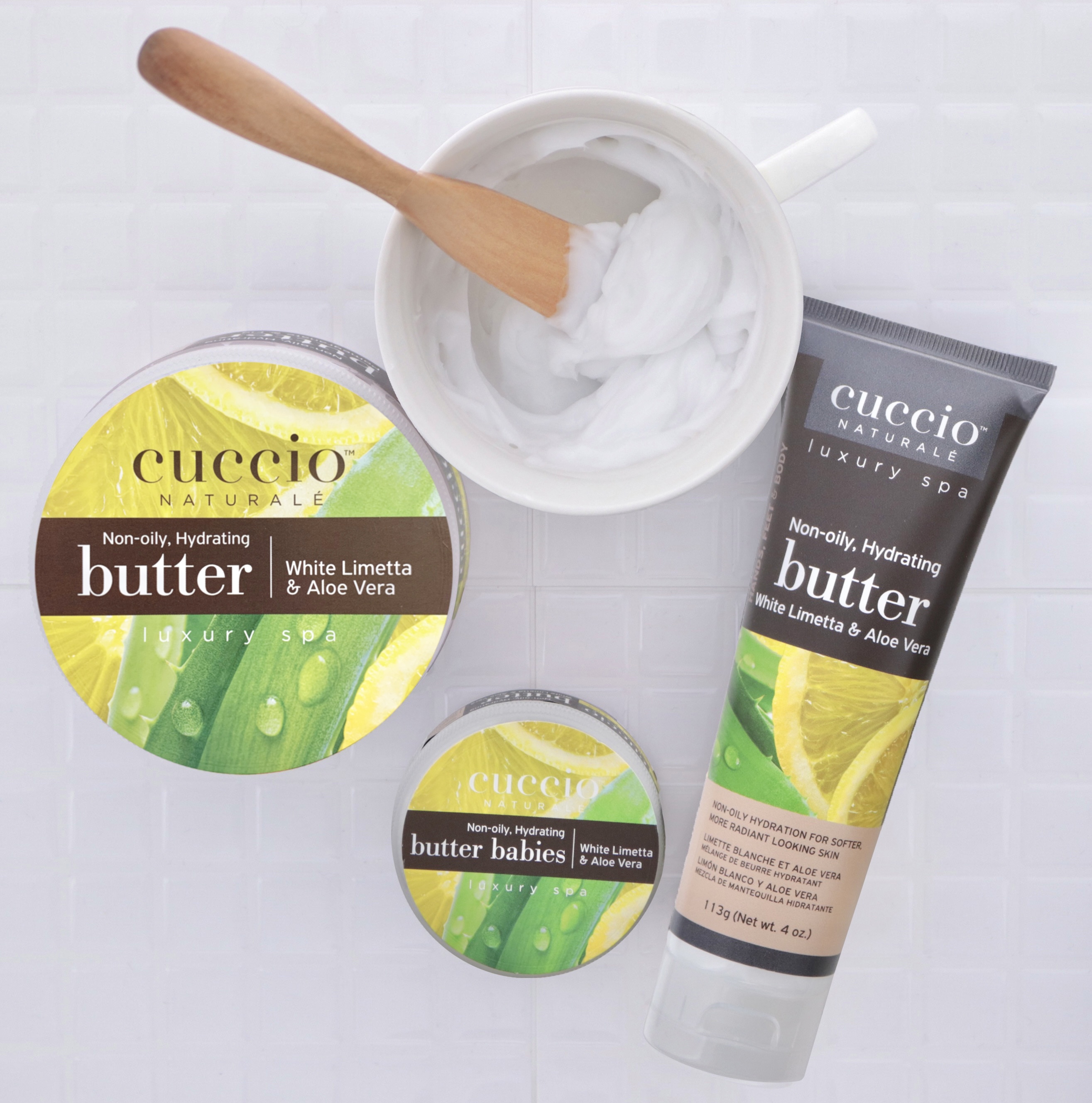 カリフォルニア生まれのオーガニックブランド「cuccio naturale(クシオ ナチュラーレ)」のバターブレンド。ベタつかず24時間潤いをキープします。ホワイトライム、アロエベラエキス配合で、塗布しながらマッサージをすることにより引き締め効果が期待できます。