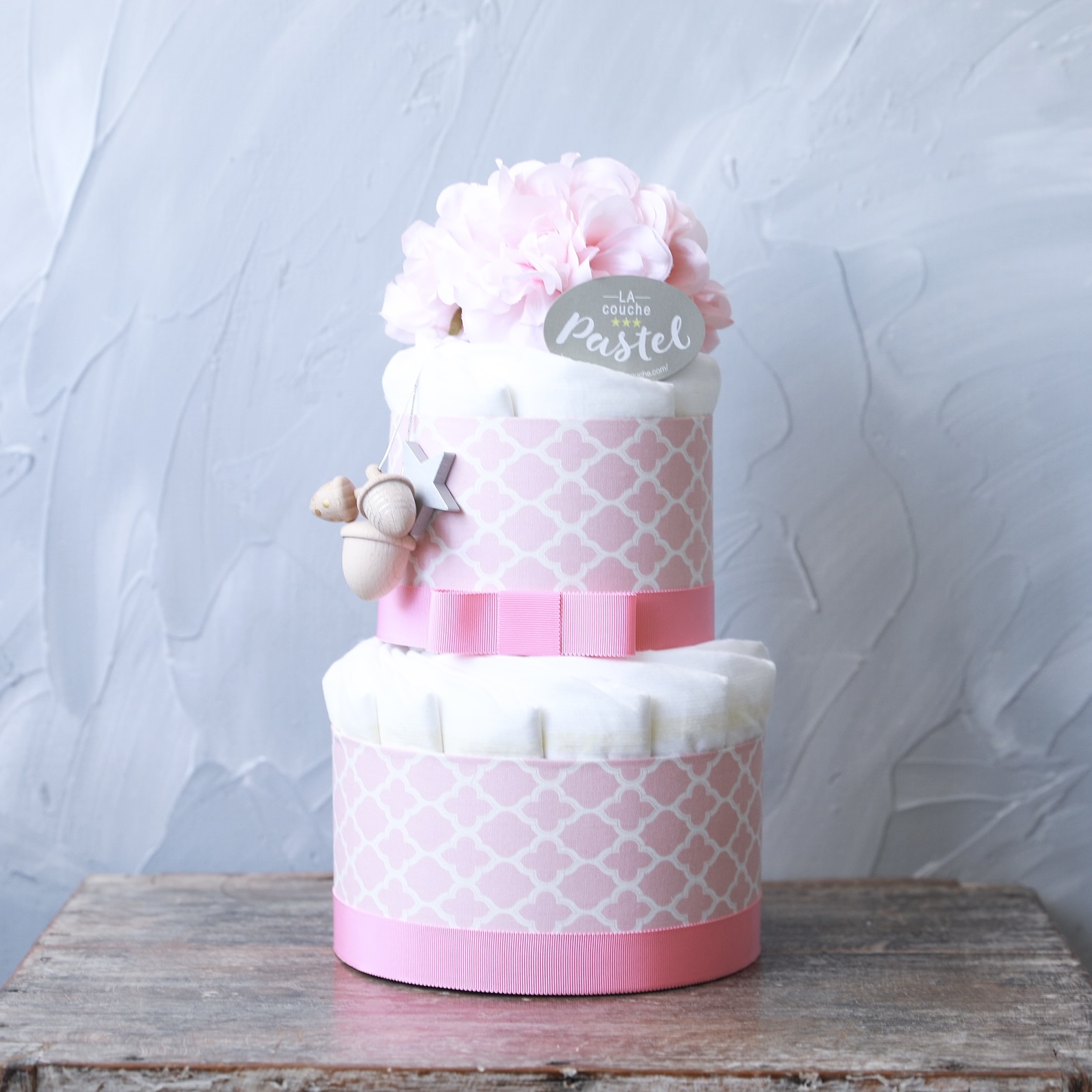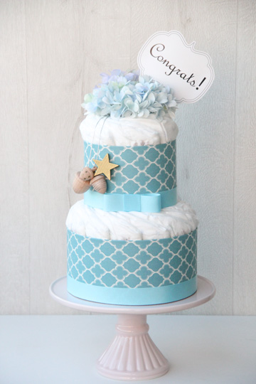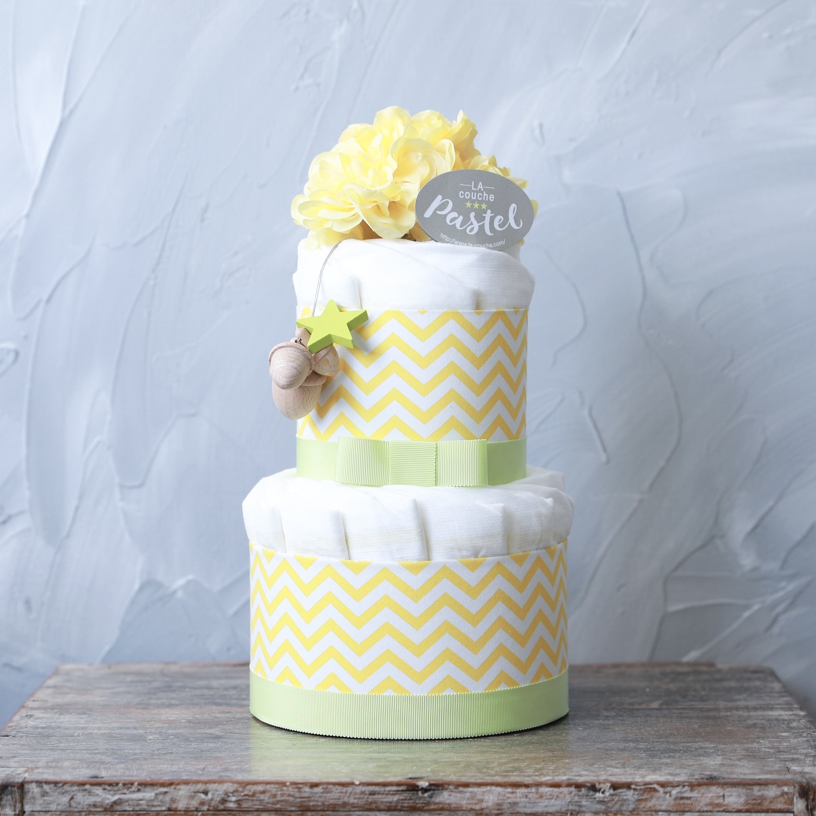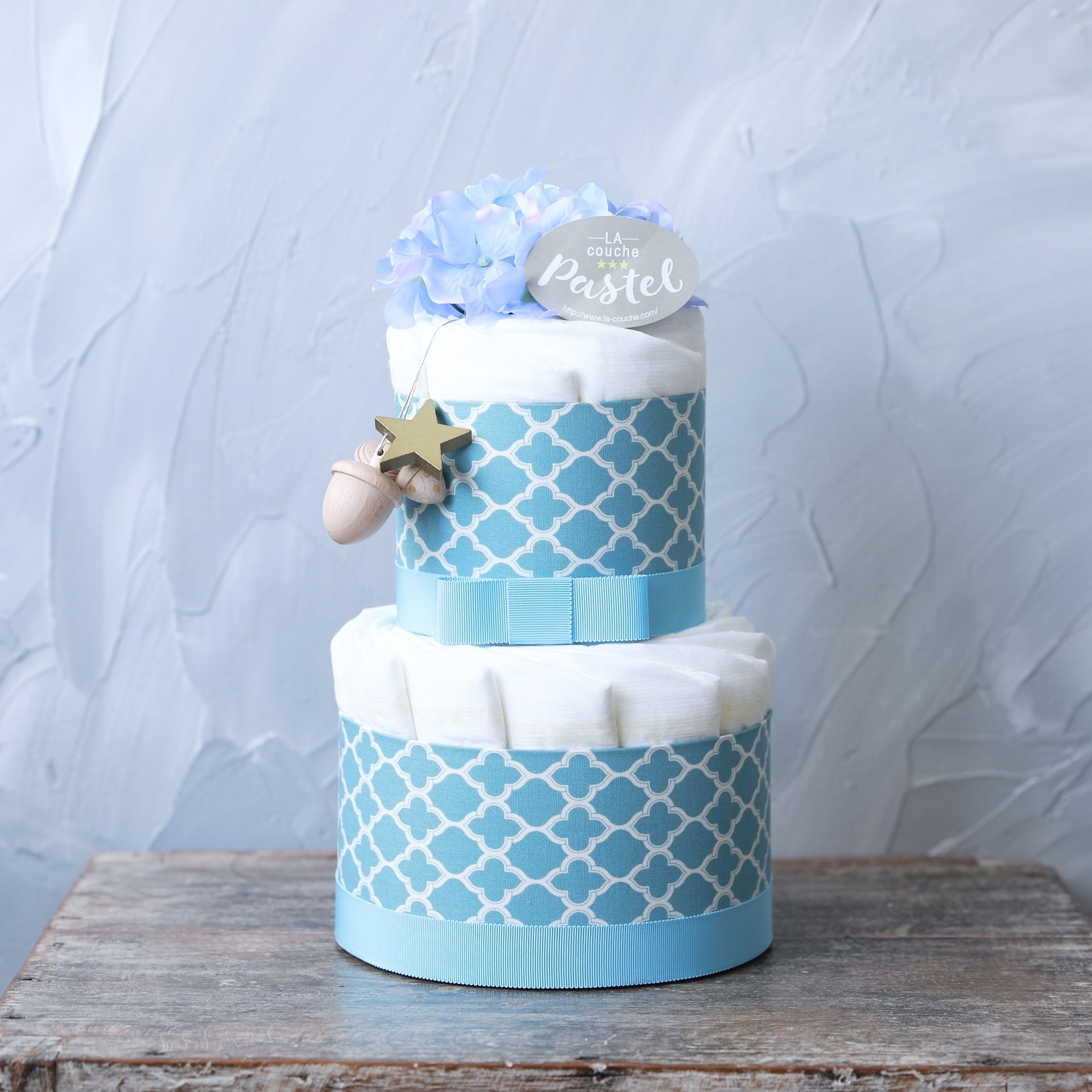 オーガニックコットン配合オムツに【Kiko+】の木のおもちゃ付きプレミアムおむつケーキ。