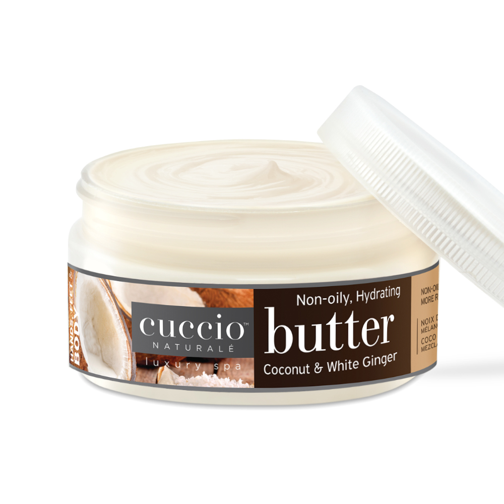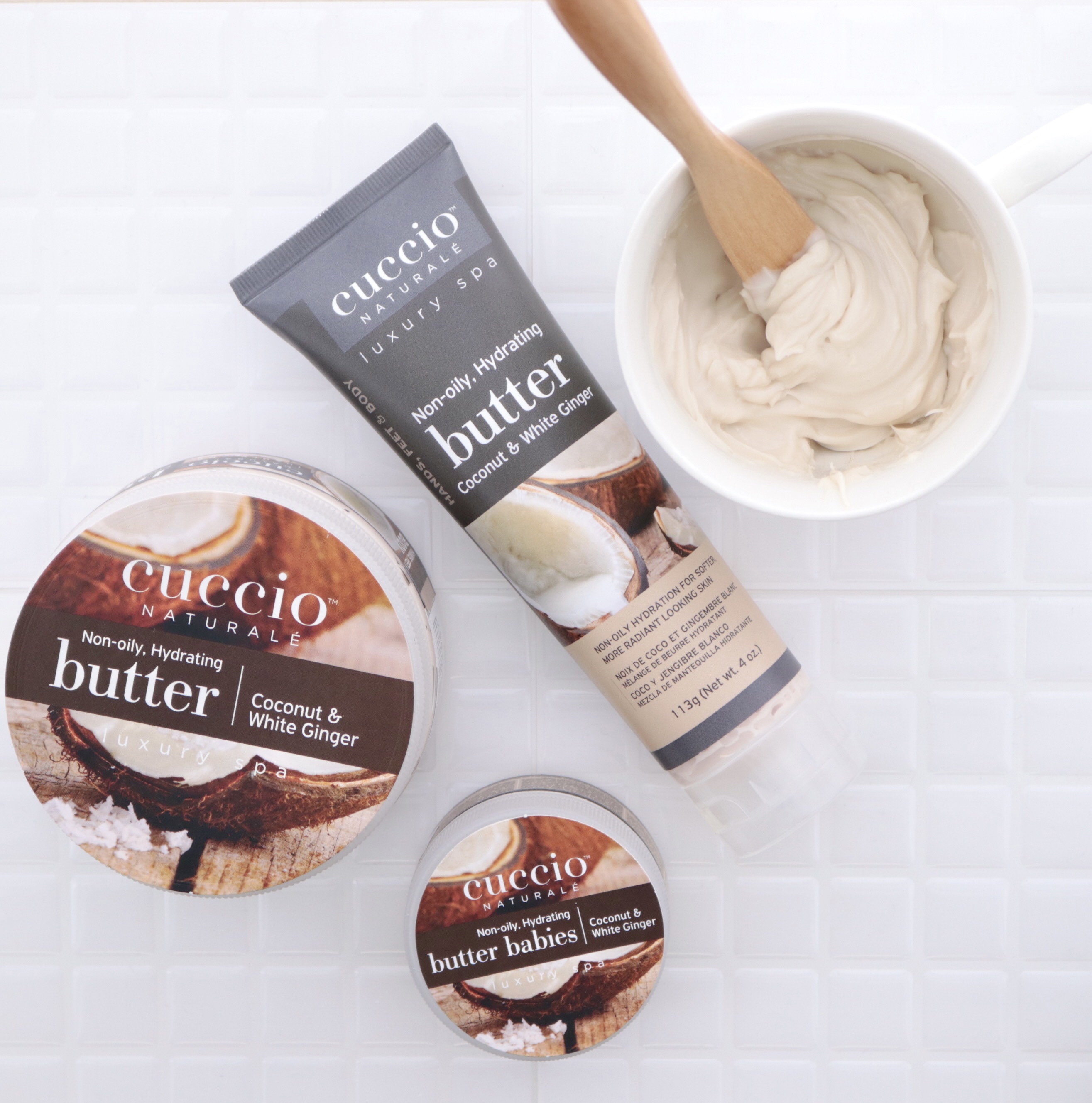 カリフォルニア生まれのオーガニックブランド「cuccio naturale(クシオ ナチュラーレ)」のバターブレンド。べたつかずに24時間うるおいをキープします。ココナッツ、ホワイトジンジャーエキス配合で、潤いサポートに優れ、皮膚をすこやかに保ちます。