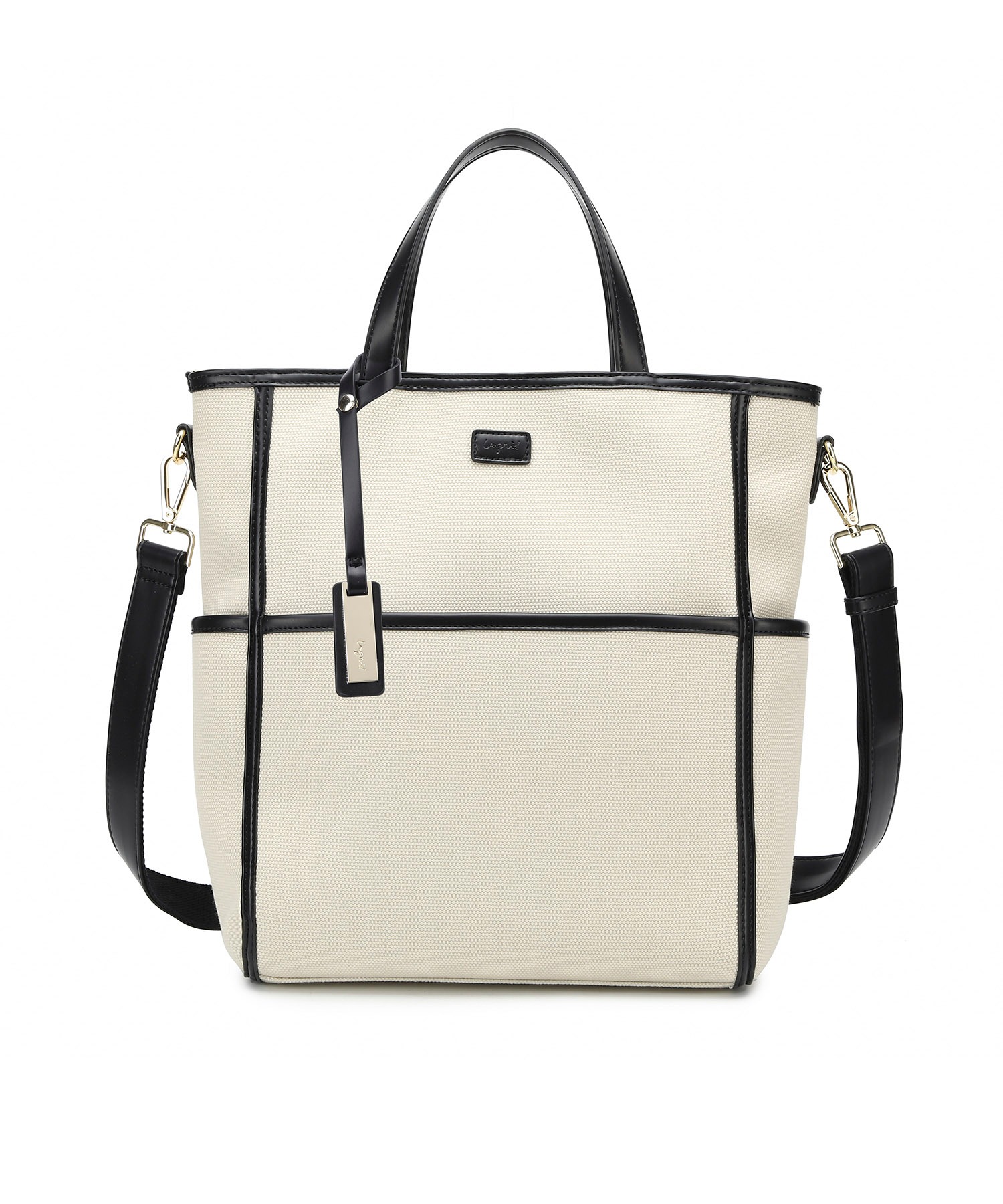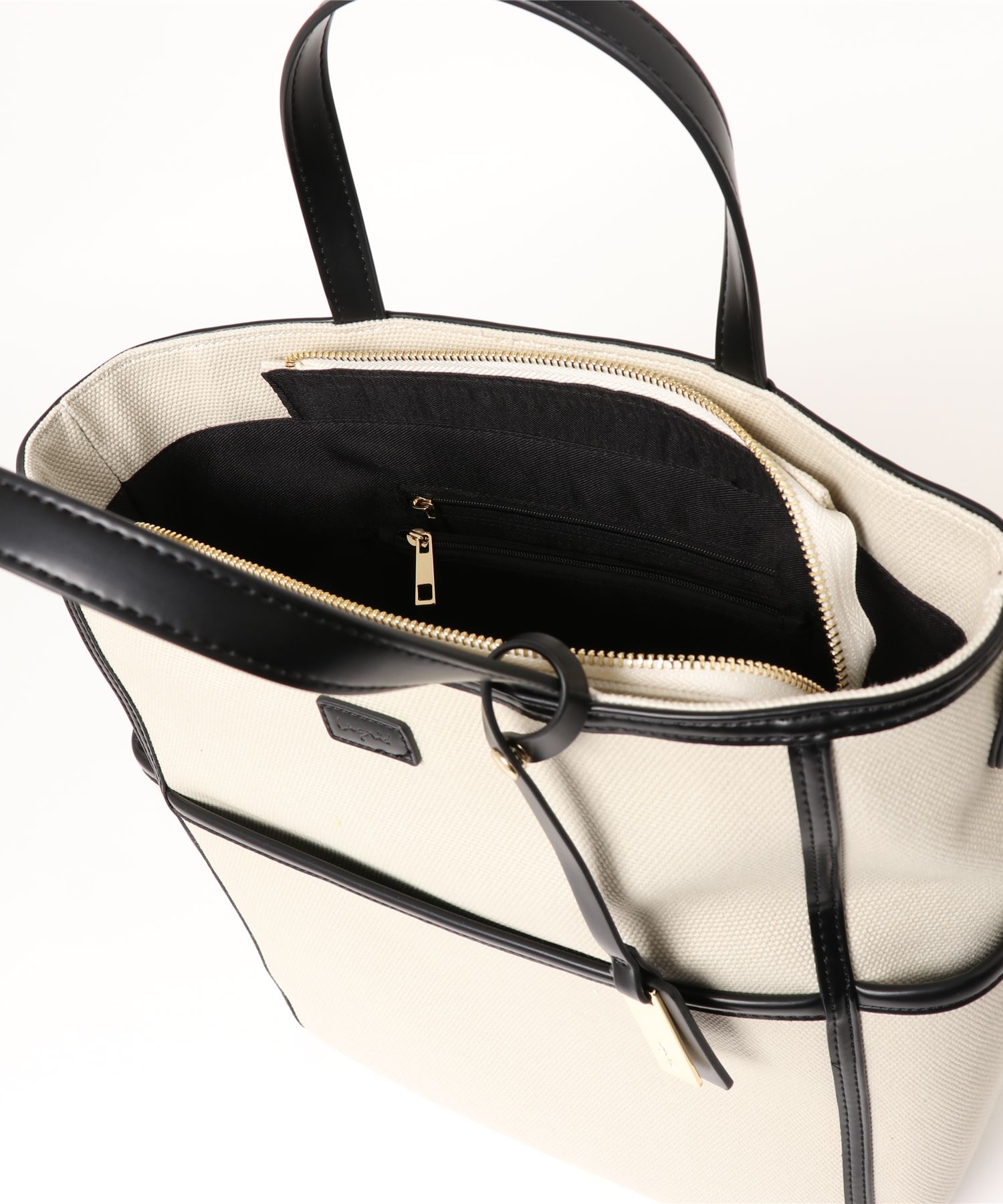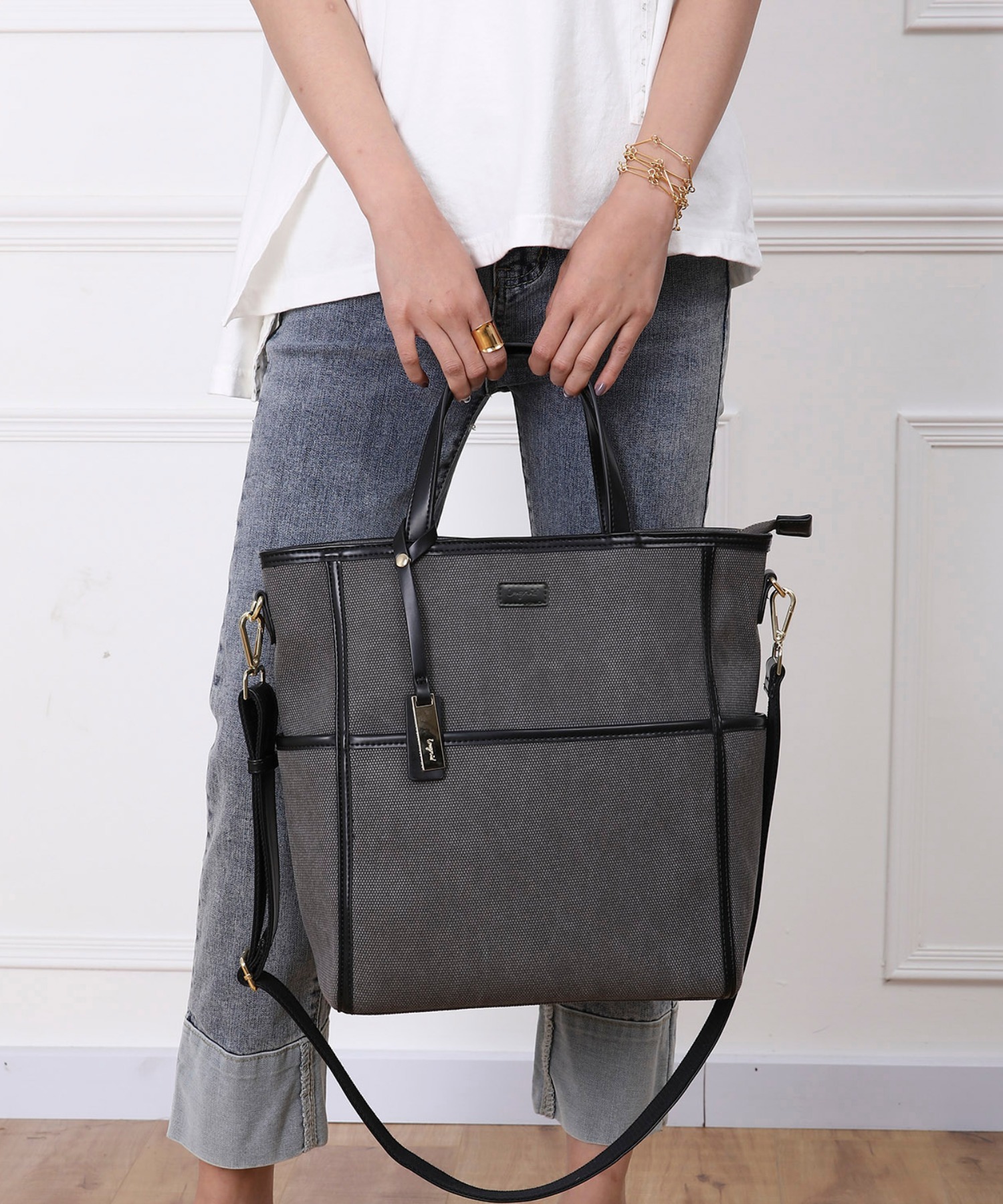 大口注文・法人のお問い合わせはこちら普段使いから通勤シーンでも使えるように丈夫なキャンバス地にパイピングがアクセントになったシンプルなデザイン!嬉しいサイズA4収納可はもちろん、実用性、サイズ感やフォルムまでこだわったオトナ女子の為のトートバッグです。 落ち着いたカラー展開が春夏のイメージのあるキャンバス素材のイメージを覆し、オールシーズン使えます。バッグの外側全面にポケットがついており、スマートフォンやパスケースなどの収納に便利。メイン収納口はジップを採用しており、安心して荷物を入れられます。 内側にはポケットが三つ備わっているので小物と分けて管理でき使い勝手抜群!付属のショルダーを使い、2WAYでお使いいただけます。