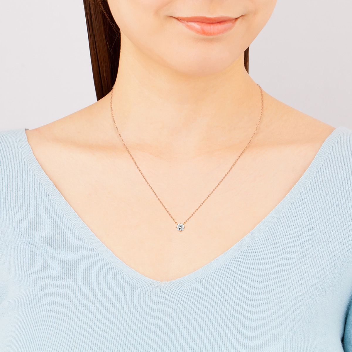 キュービックジルコニアの眩い輝きが際立つ、「Canal 4℃」のシンプルな一粒ネックレス。すっきりとした印象をみせる4本爪のデザインです。温かみのある色合いが女性らしいピンクゴールドと、洗練された輝きを放つイエローゴールドの2色展開。