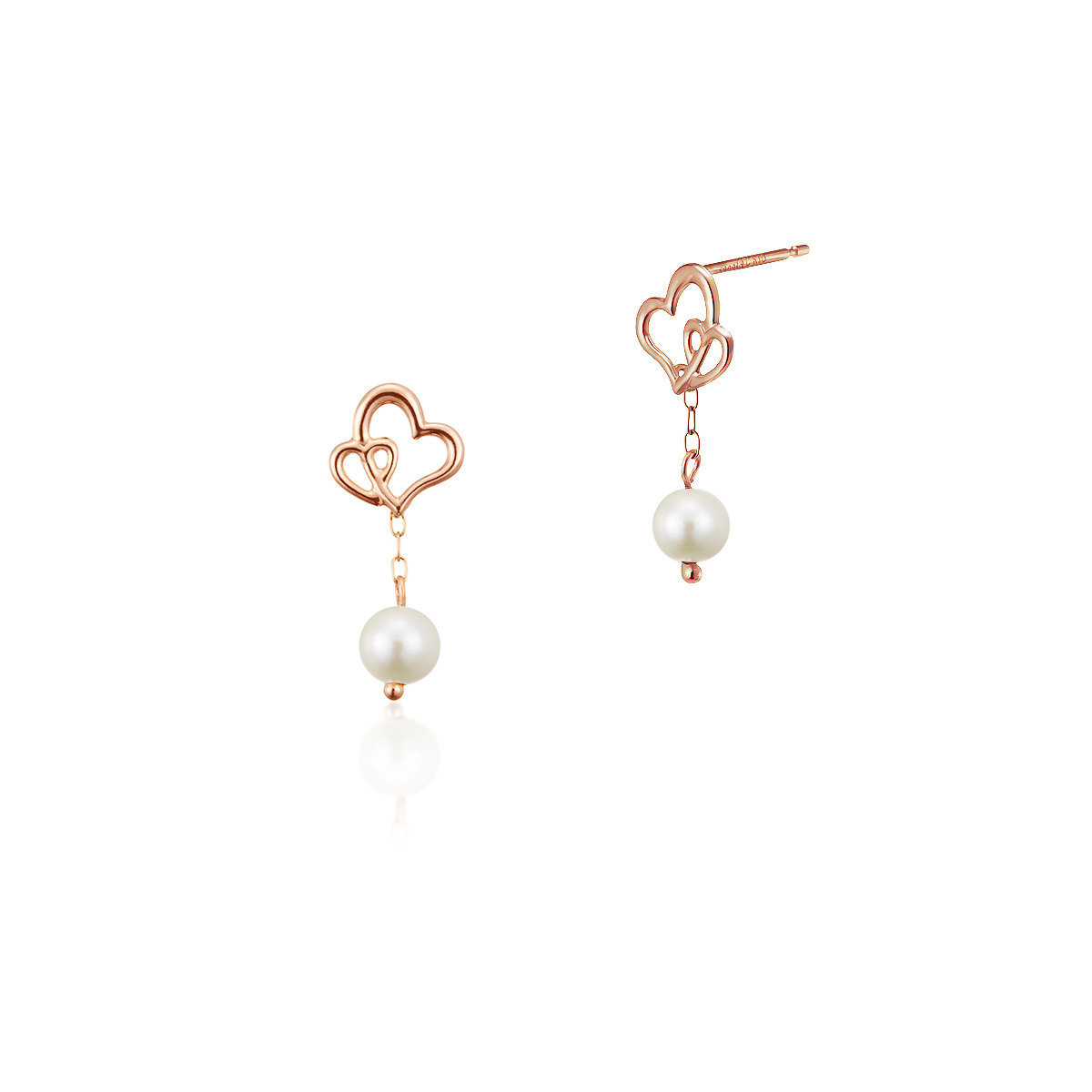 ハートが二つ寄り添い、大きな淡水パールが印象的な、「Canal 4℃」のピンクゴールドのピアス。動くたびに揺れる淡水パールが女性らしく、甘く可愛らしい女性へのプレゼントにもおすすめです。特別な想いや日頃の感謝を、輝きとともに贈りませんか?