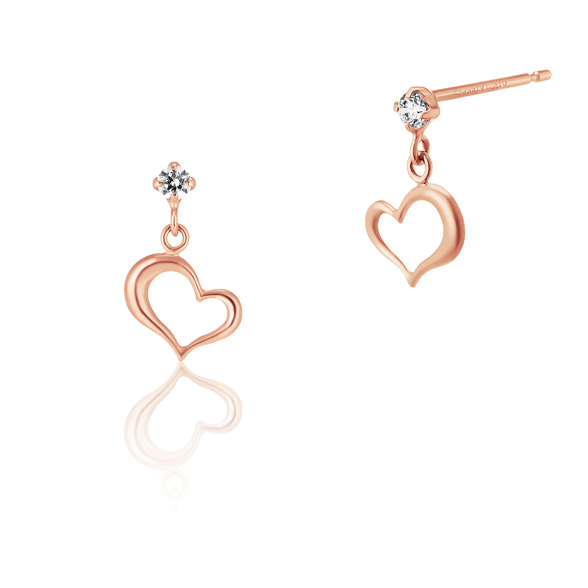 大口注文・法人のお問い合わせはこちらキュービックジルコニアの下で揺れ動くオープンハートが愛らしい印象のピアス。やわらかい輝きのピンクゴールドのラインで描いたハートは女性らしさと優しさにあふれ、プレゼントにもおすすめです。 【店舗問い合わせ品番:151416553104】