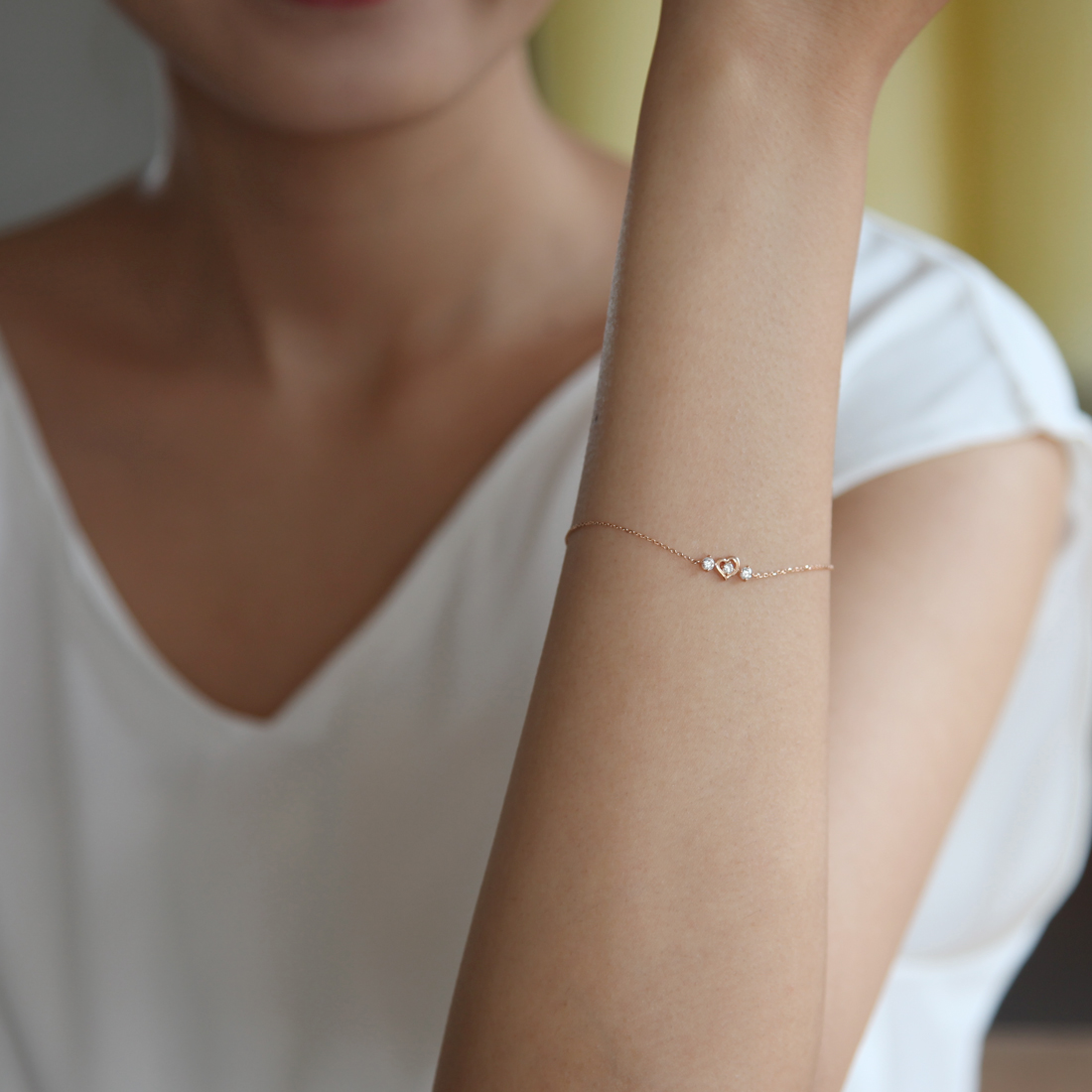 オープンハートモチーフと肌馴染みの良いピンクゴールドが女性らしい手元を演出してくれる、「Canal 4℃」のブレスレットです。ハートの中央と両サイドに輝くキュービックジルコニアがポイント。キュートなデザインは自分用にはもちろん、プレゼントとしてもオススメです。