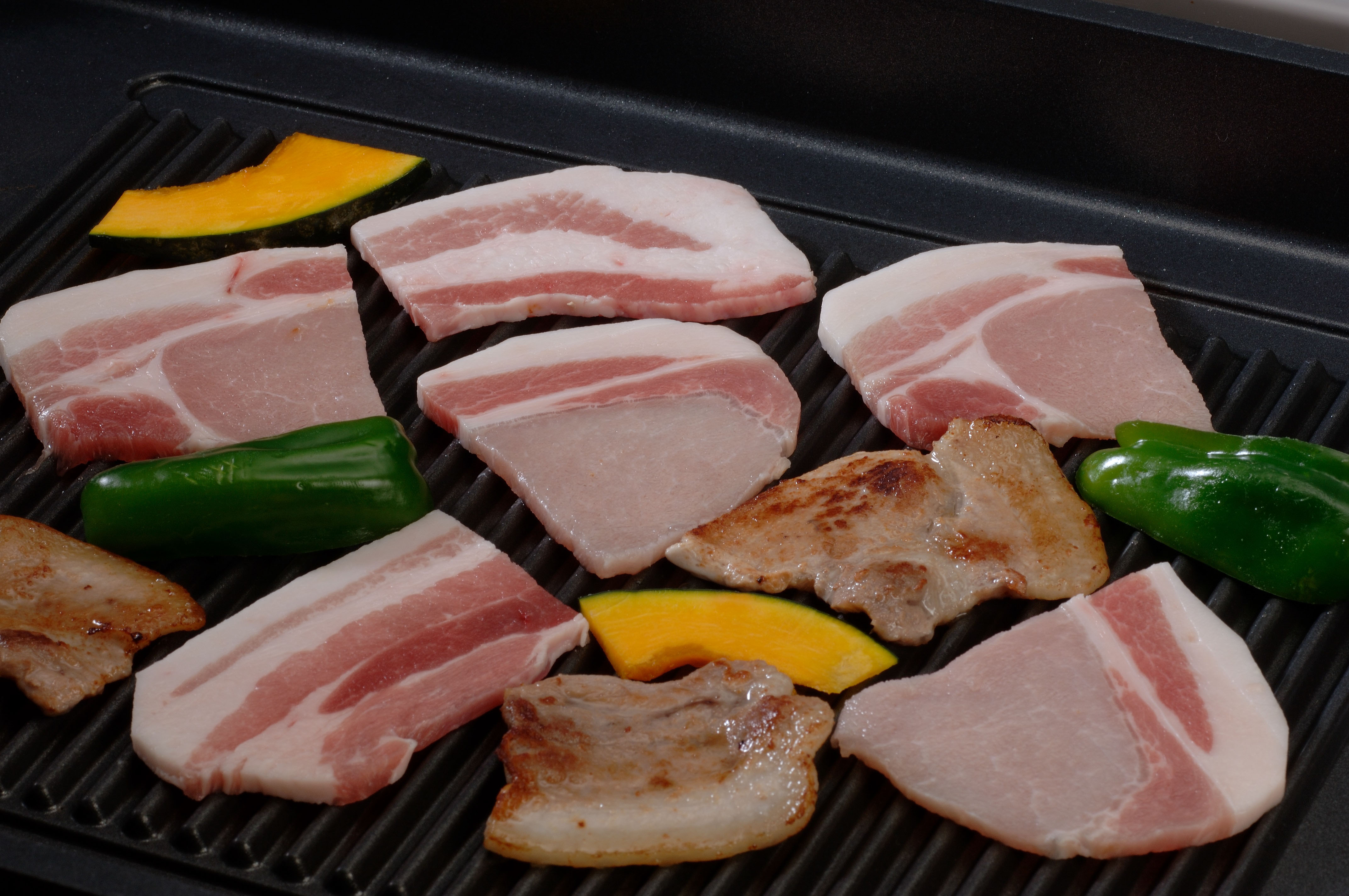 <焼肉・ロースステーキの場合> 熱したフライパンで両面を焼き、塩・胡椒をかけて焼いてください。