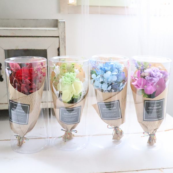 大口注文・法人のお問い合わせはこちらドライフラワーなので水替えなどの手間がなく、綺麗な状態で長くお楽しみいただけます。 また、花粉を気にせずお気軽に飾ることができます。
