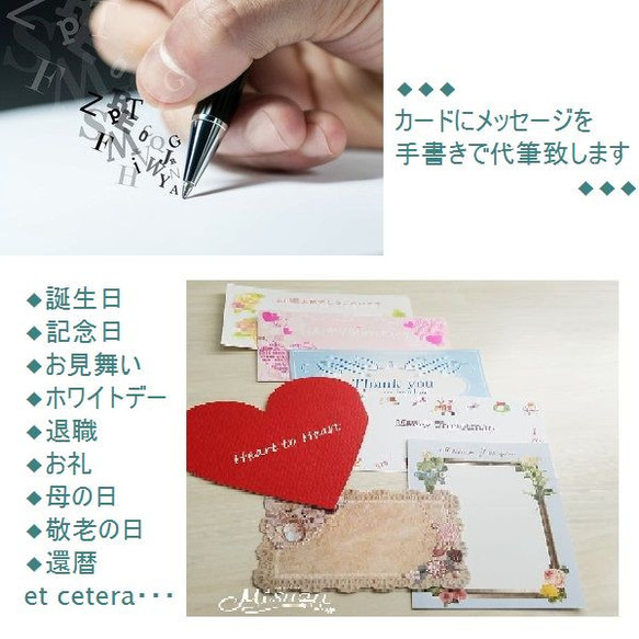 フリーメッセージは内容を代筆させていただきます。内容の入力がない場合は白紙のカードをお付けします。不要を選択した場合、カードはお付けいたしません。