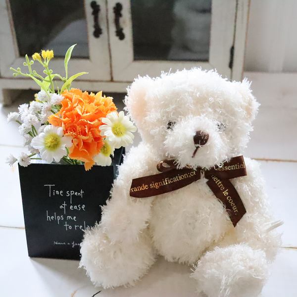 お手入れがしやすく、飾りやすいマジカルウォーターのアレンジメントなので、プレゼントのちょい足しにもおすすめです。 お花を楽しんだ後でも、ふわふわのかわいらしいぬいぐるみが思い出として形に残ります! また、オプションのオリジナルフレーバーティーと一緒に贈ることで、日々に癒しをプレゼントできます。