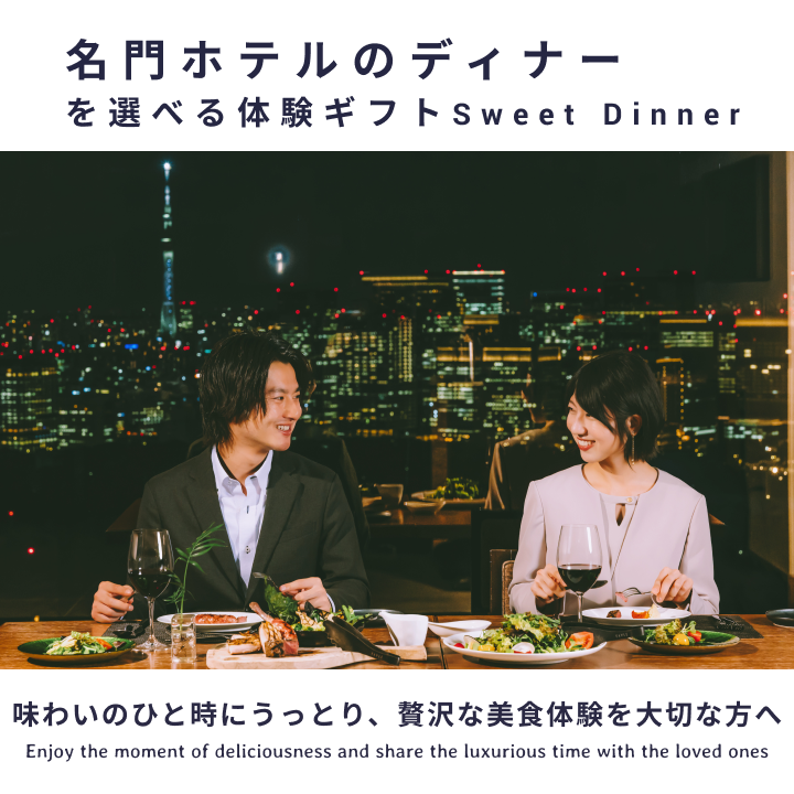 大口注文・法人のお問い合わせはこちらスウィートディナーギフト(RED)は、こだわりぬいた美食空間と一流料理人の誇りで創り出す高級ホテルのディナーを、ペアで楽しんでいただけるチケットです。大切な恋人、友人へ、またお世話になった方へのプレゼントにおすすめです。