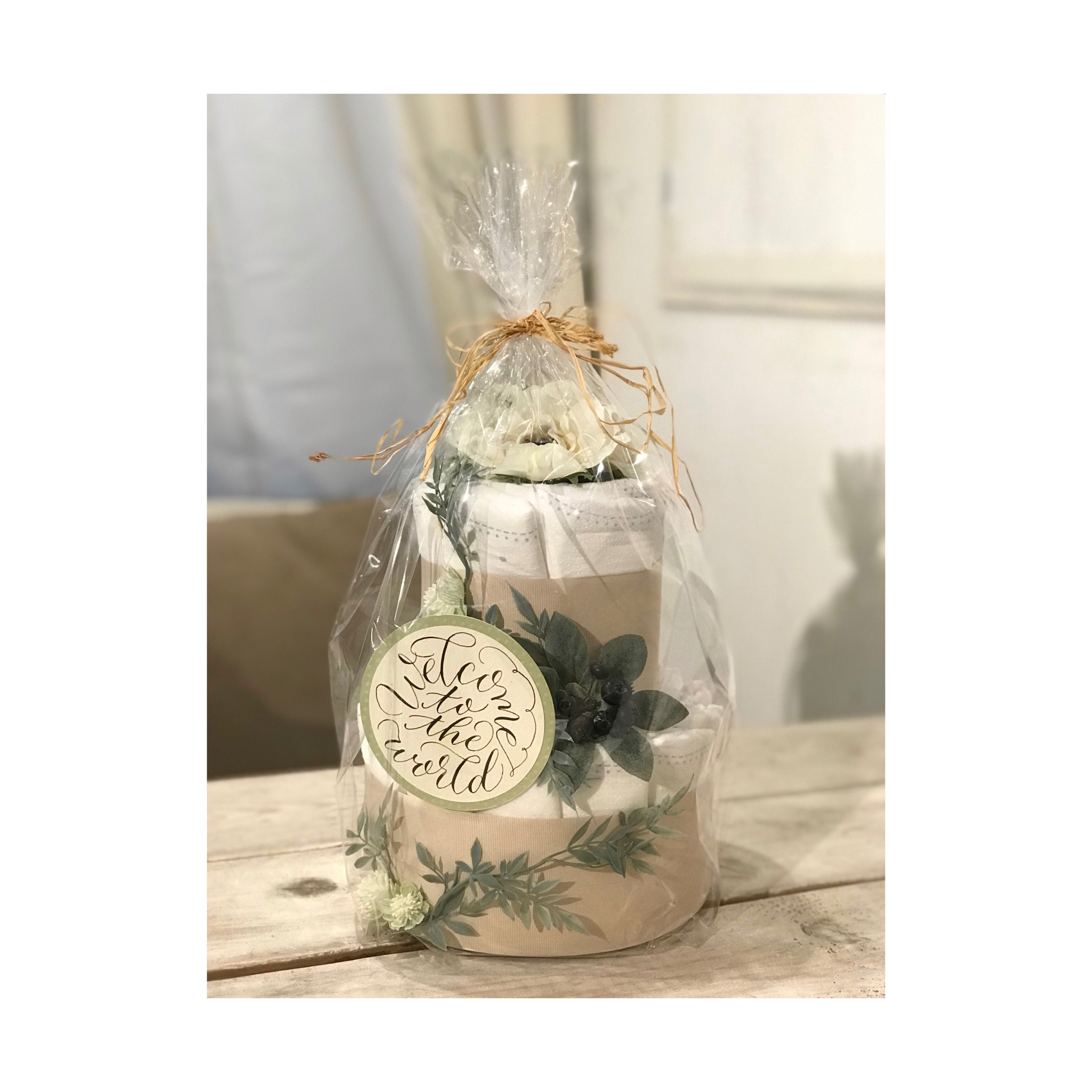 白とグリーンの色合いが爽やかでオシャレな雰囲気の「Garden Partyガーデンパーティ」。 STELLA Diapercake の人気商品です。 白を基調としているので、ベビーシャワーにも使いやすく男の子用、女の子用どちらの装飾にも 合わせやすいデザインです。