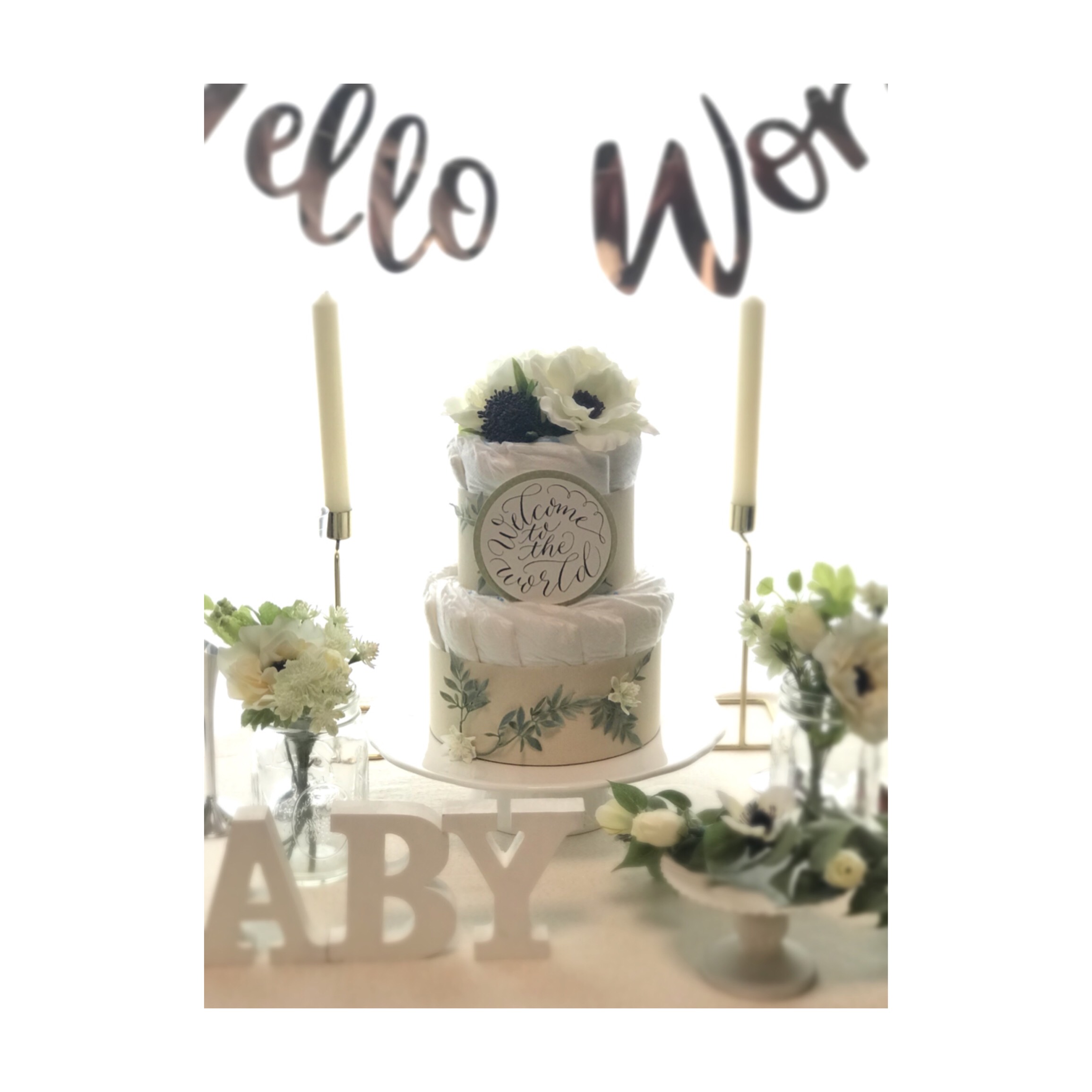 大口注文・法人のお問い合わせはこちらダイパーケーキとは、オムツをケーキのような形に作った「おむつケーキ」のこと。 発祥の地アメリカでは、出産前の妊婦さんを囲んでお祝いするパーティー「ベビーシャワー」の装飾アイテムとして使われています。 ダイパーケーキは実用的でなおかつ、パーティに華を添えられる重要な存在です。 なんといっても、オムツは必ず赤ちゃんが使うものですから差し上げても邪魔にならないところがおすすめです。 日本でも出産祝い以外に、安産を祈願したベビーシャワーに欠かせないアイテムとして人気が広まっています。 また、パンツタイプのオムツで作って、ハーフバースデーや1歳・2歳のお誕生日に飾ったり贈ったりすることもあります。 特に生後6か月を祝うハーフバースデーには、ケーキをまだ食べられない赤ちゃんのためにダイパーケーキを飾ると、パーティーをとても可愛く華やかに演出できます。 また、出産したお友達に会いに産院へ行く際、何を手土産に持っていけばいいのか 悩まれたことはありませんか? 最近は生花の持ち込みがNGな病院も多いですし、授乳中の女性はスイーツも控えなくてはならないのではなおさら悩む方は多いと思います。 STELLA Diapercakeは質の良いアーティフィシャルフラワー(造花)を使っているので安心ですし、飾っておくだけで病室を華やかにしてくれます。 産まれたばかりの赤ちゃんと一緒に撮影して、退院したお友達に写真をプレゼントなんて素敵ですね! ダイパーケーキに安産祈願、平安無事の願いを込めて。 素敵な習慣です。 ※上記写真はベビーシャワーのイメージです。 飾られているダイパーケーキは実際の商品と異なりますのでご注意ください。