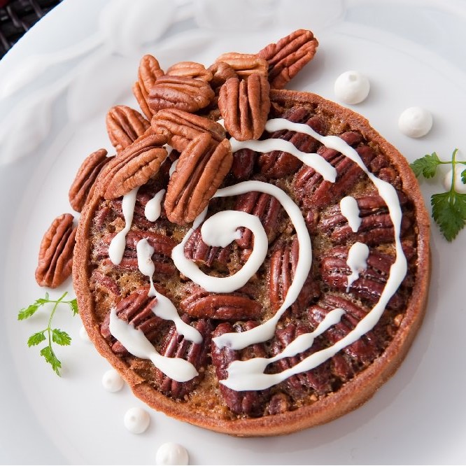 ピーカンナッツの独特の香ばしい風味をラム酒で引き立て、やさしい甘さのカラメル生地で表面はカリッと、中はしっとりと焼き上げ、サクサクのタルト生地で包みました。
