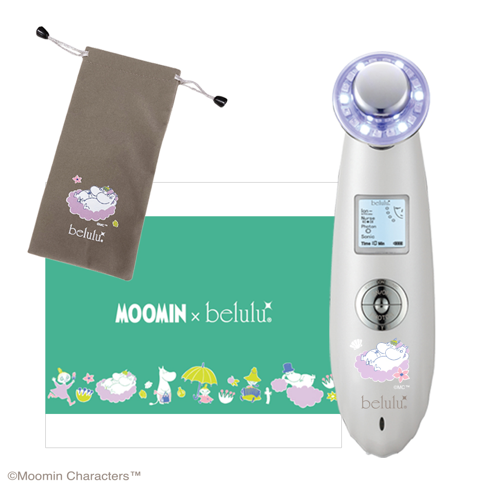 大口注文・法人のお問い合わせはこちら超音波・イオン導出・イオン導入・振動・LED光エステの機能が付いた、1台で5役を果たすマルチ美顔器です。デイリーケアとエイジングケアの両方で美肌へと導きます。 美ルルの人気商品にかわいいムーミンたちがデザインされていて、使う度に楽しくなるはず!ムーミンコラボの肌質測定器(スキンチェッカー)と併せてご使用いただくこともおすすめです。