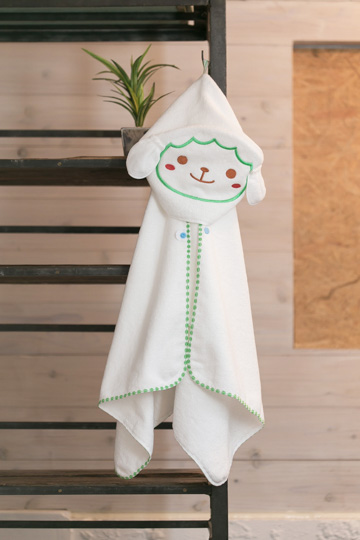 高吸水泉州タオルでつくられた日本製タオルギフトです。 フード部分にタオルを収納して、リビングのアクセントや、枕、クッションとしてもご利用いただけます。 2段階調節可能なスナップボタン付きでお子様の体格や成長に合わせて調節できます。 高吸水、高品質タオルの使用だけでなく、オリジナルのキャラクター刺繍もかわいらしいです。