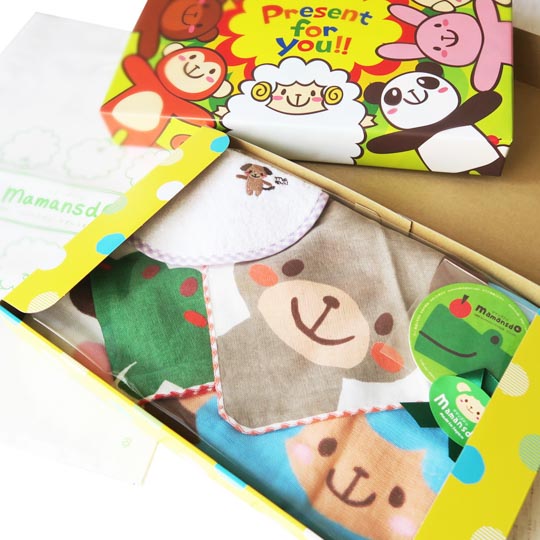 【mamansdo】のスタッフは、素材、サイズ、キャラクターデザイン、ギフトボックスに至るまで、開発から名入れ、発送までを、すべて子育て経験豊富なお母さん達で行っているブランドです。 開発段階で赤ちゃん、幼児、お母さんにとって使い安さを重視し考えられております。 また、【mamansdo】のアニマルはすべてオリジナルです。 赤ちゃん、幼児が親しみやすいかわいいアニマル柄を、ギフトボックス、ラッピング包装紙にも使用しております。