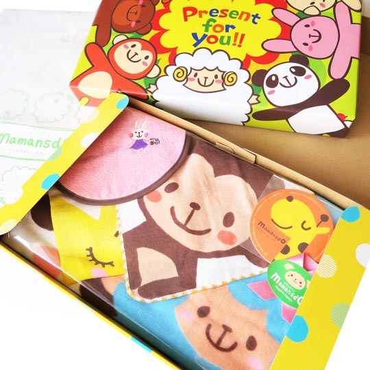 【mamansdo】のスタッフは、素材、サイズ、キャラクターデザイン、ギフトボックスに至るまで、開発から名入れ、発送までを、すべて子育て経験豊富なお母さん達で行っているブランドです。 開発段階で赤ちゃん、幼児、お母さんにとって使い安さを重視し考えられております。 また、【mamansdo】のアニマルはすべてオリジナルです。 赤ちゃん、幼児が親しみやすいかわいいアニマル柄を、ギフトボックス、ラッピング包装紙にも使用しております。