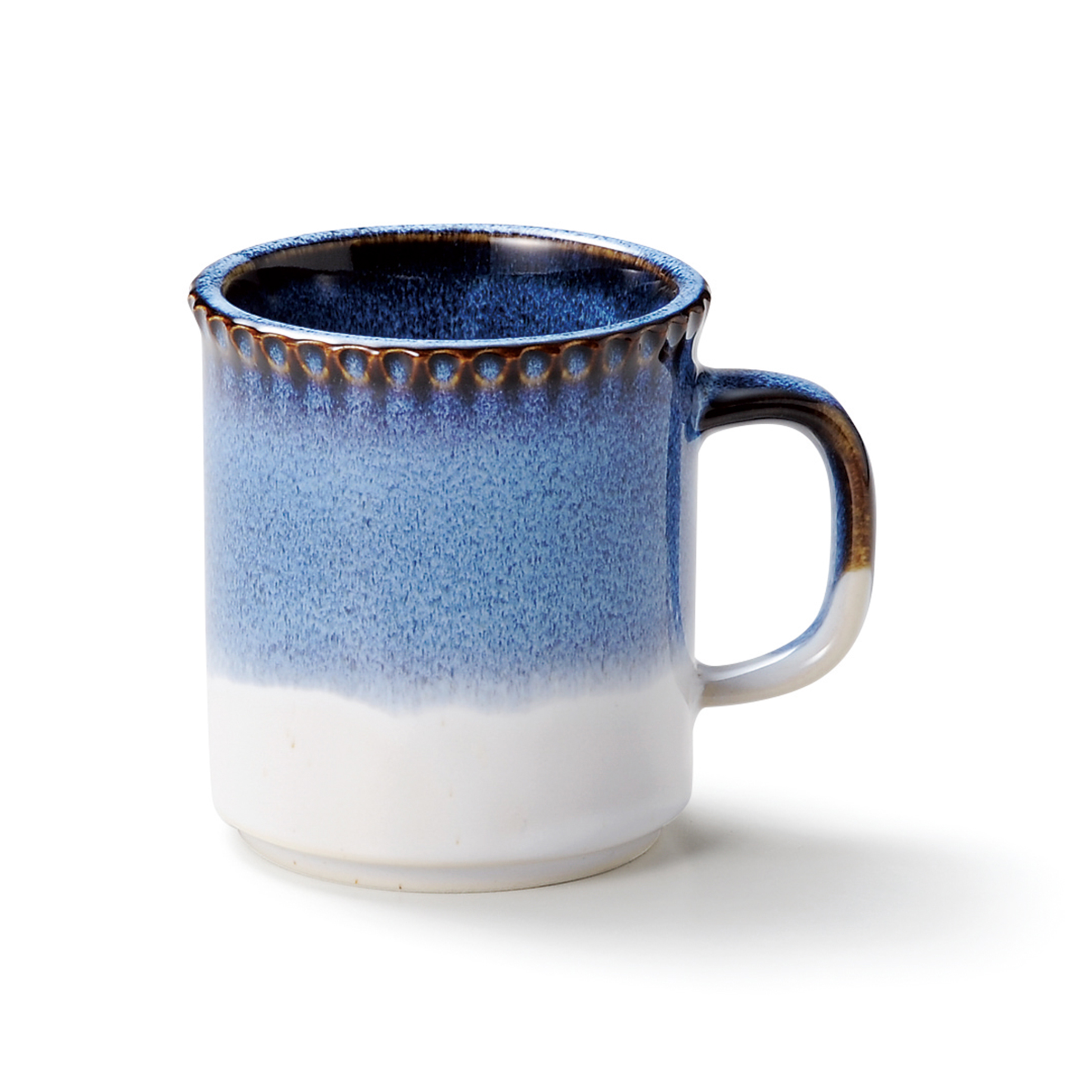 「aito製作所(アイトーセイサクショ)」がお届けする、マグカップです。リッジシリーズは磁器に色を付ける、釉薬というガラス状になる部分のデザインを楽しむことができます。内側までしっかり色合いの変化が見えるのが特徴です。しっかりしたボディと取っ手は、男性にもぴったりです。引っ越し祝いなど様々な用途プレゼントに!