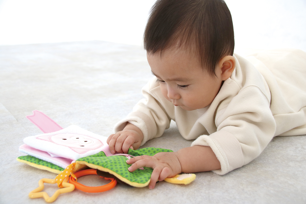どうぶつたちの“いないいないばー”布絵本。しっぽの形で、何のどうぶつか 当てっこすることもできます。バギーに付けられるので、外出時のお供にも。五感を使った遊びを通して、感受性や創造力、思考力、コミュニケーション力を養っています。