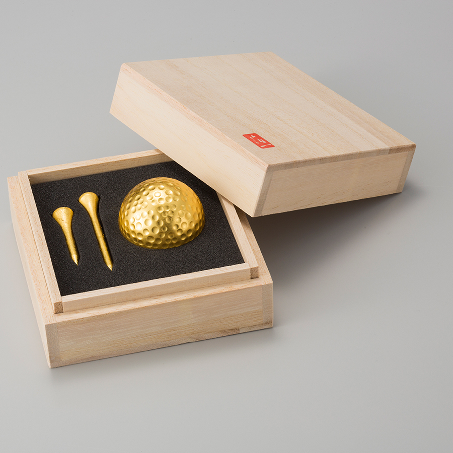 ゴルフコンペなどが流行っていた頃、その記念品に最適なものを企画した際に生まれた商品です。金のボールは金沢にしかない商品で、いまだに人気を誇る贈り物です。 ご贈答やコンペの記念品・賞品に、ユニークなノベルティをお探しの方におすすめです。得意先のお客様とのコンペでの話題作りに最適です。