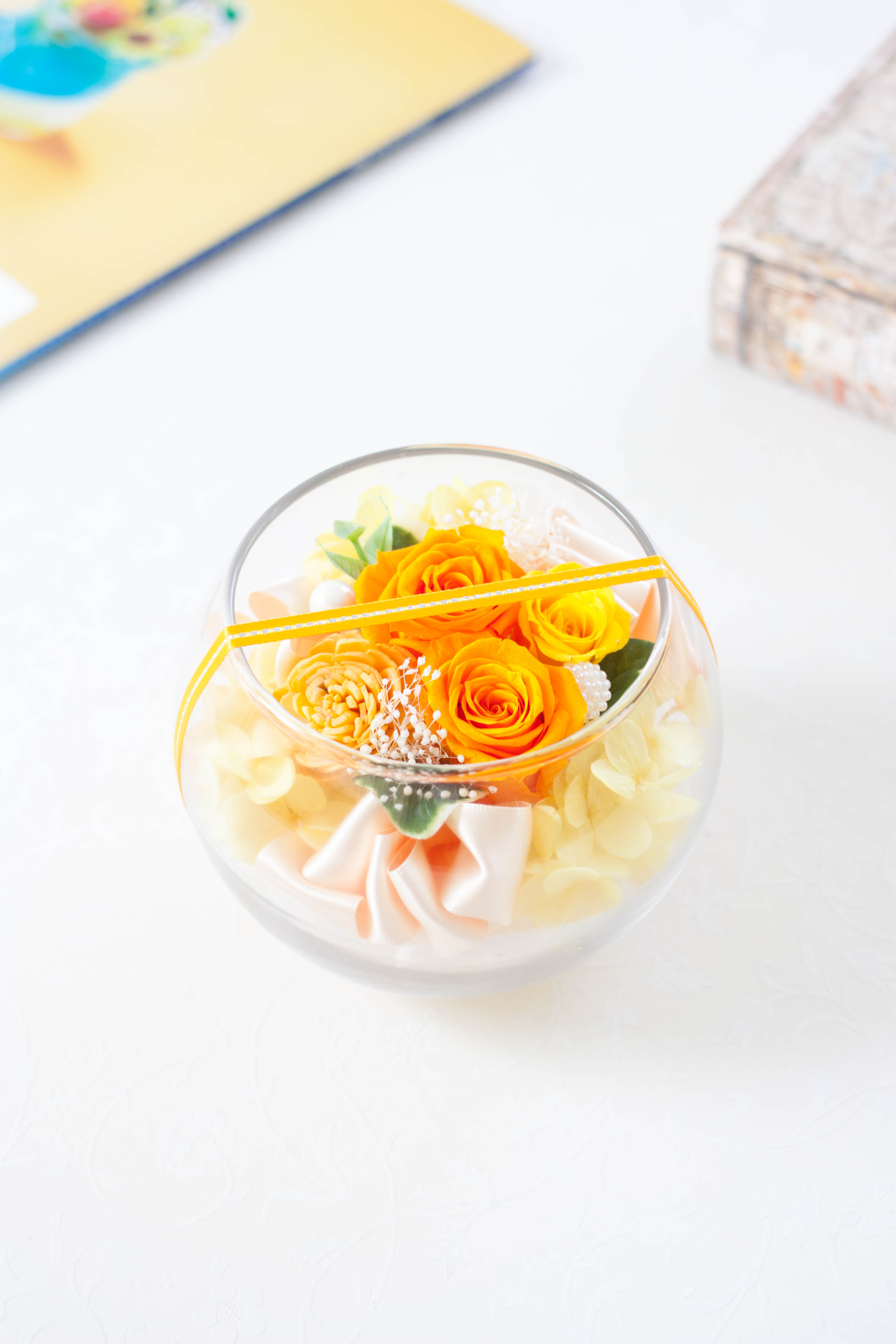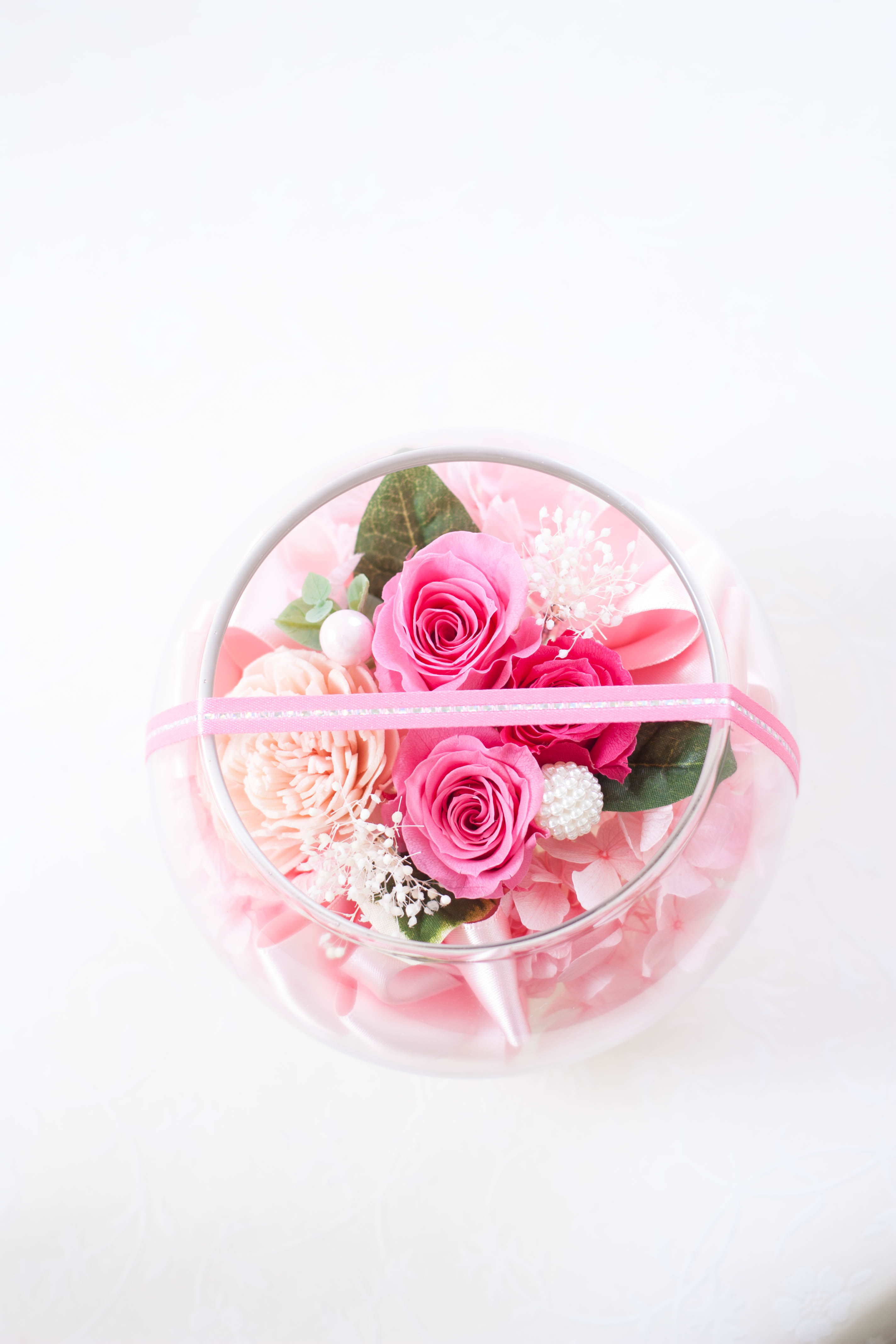 生花に特殊加工を施した長期間楽しめるお花です。 風合いと色の鮮やかさが、まるで生花のようです。 水やりも不要で、手軽に楽しめるのでとても人気があります。 プリザーブドフラワーは、水を与えたり日光を当てる必要がありません。 キッチン・リビング・玄関・トイレなど家の中のどこにでも飾る事ができます。 お誕生日や結婚祝い、記念日のサプライズなどにぴったりです。 すぐに枯れることがないプリザーブドフラワーは心と時間に余裕を持って事前に準備することが出来ます。
