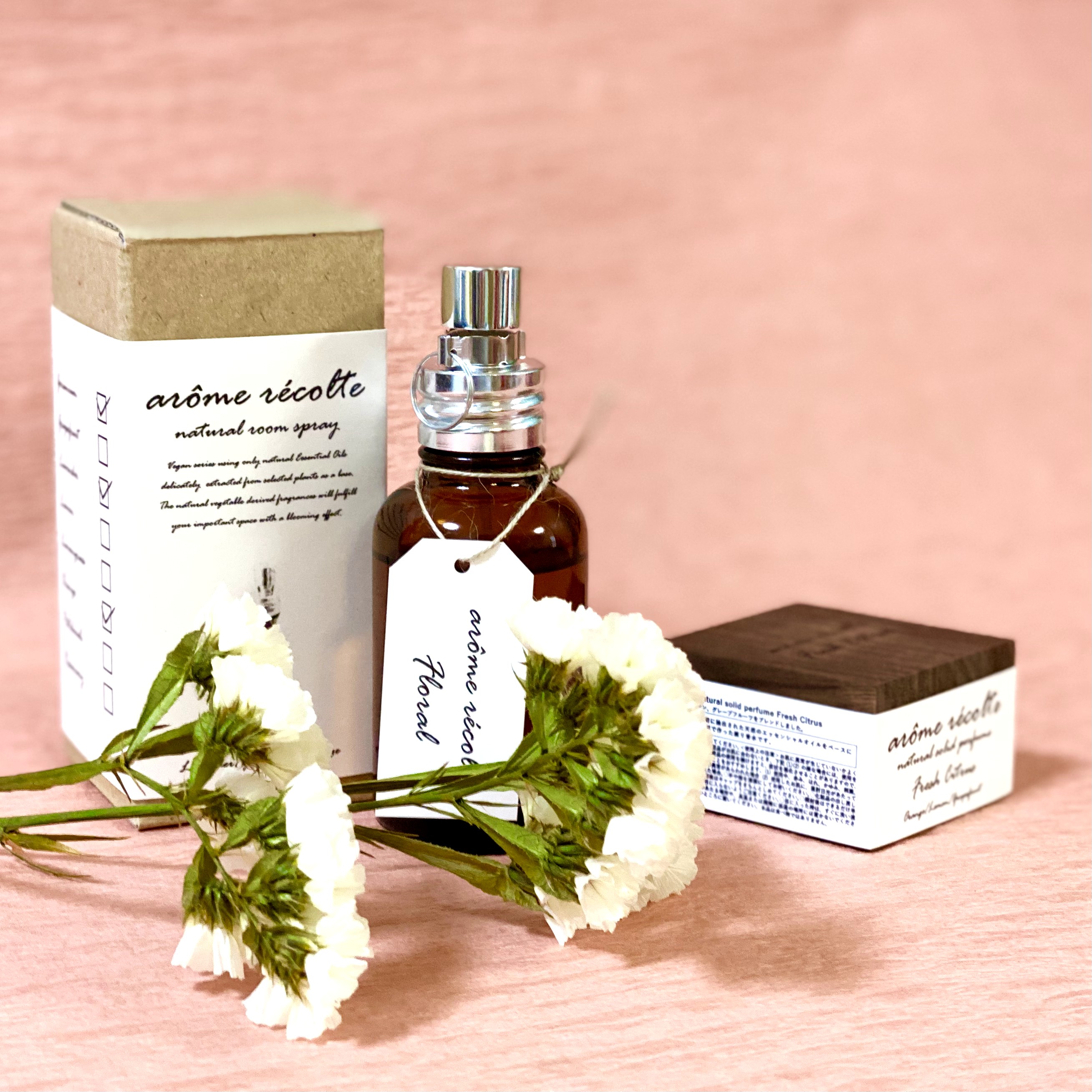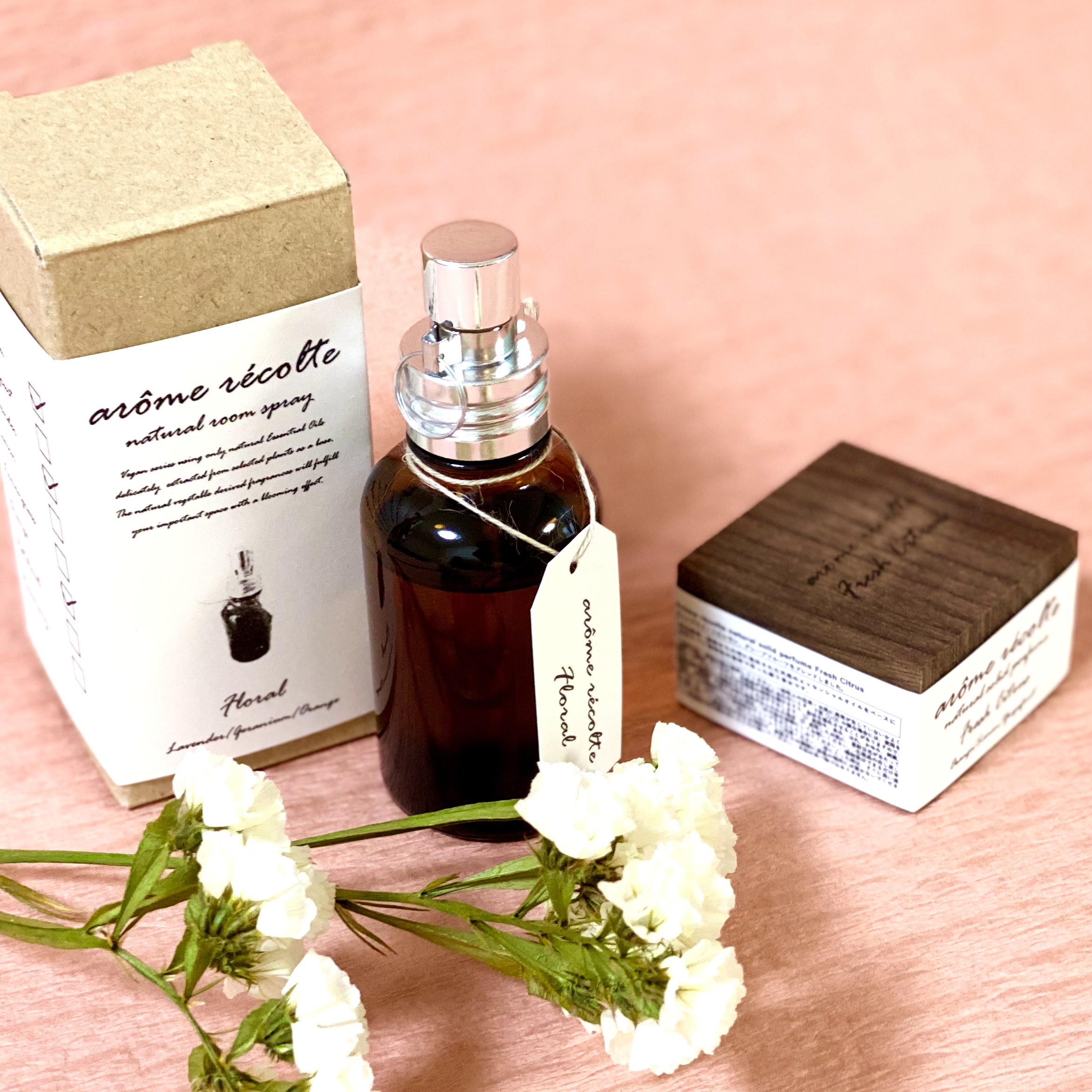 原料すべて植物性100%にこだわっているブランド「アロマレコルト」から“ナチュラルルームスプレー&ソリッドパフューム”セットをお届け。製品は植物から大切に抽出された“天然の”エッセンシャルオイルをベースにベジタブルアルコールを使用しています。