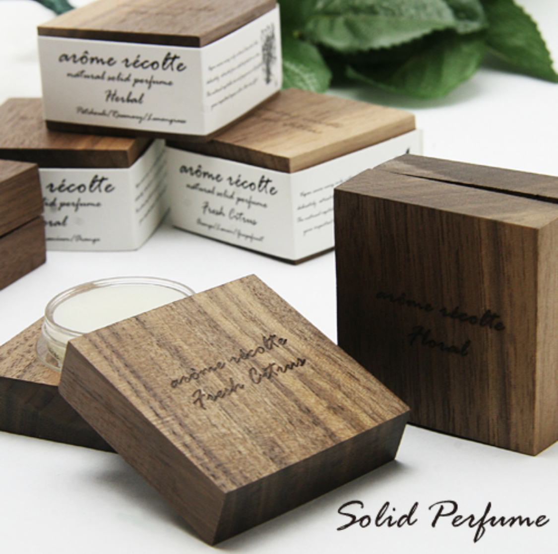 植物から大切に抽出された天然の エッセンシャルオイルを使用した練り香水です。全成分植物由来の原料で作りました。容器はウォールナットで作り商品名の焼印を施しました。天然の香りをお楽しみください。