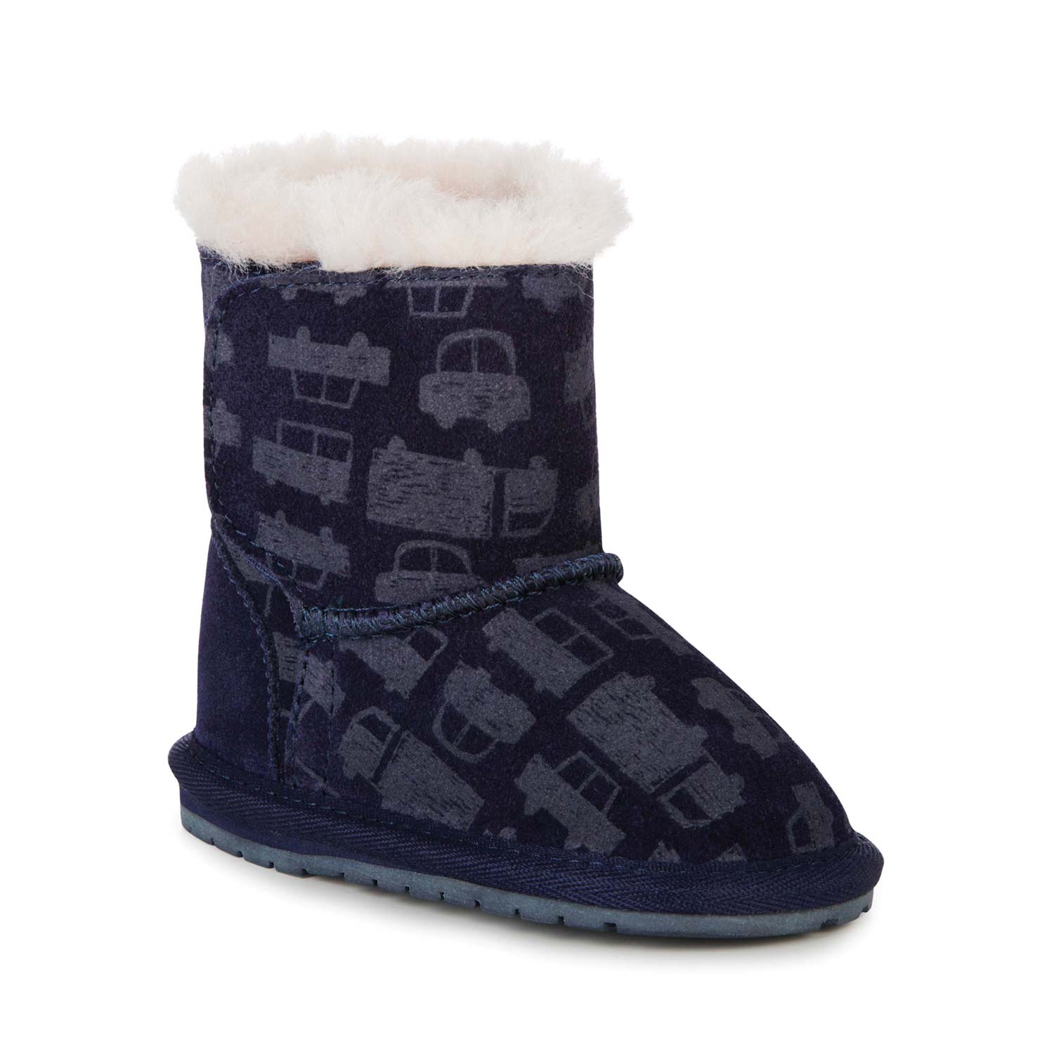 「EMU Australia(エミュ オーストラリア)」のTODDLE CARS&TRUCKSは、歩き始めたばかりのお子様の足を考えて作られたブーツ。 車やトラックのイラストが全体にちりばめられたデザインの可愛らしい一足は、ご出産祝いの贈り物にぴったりです。車が大好きなお子様やお孫様への初めての贈り物にいかがでしょうか?