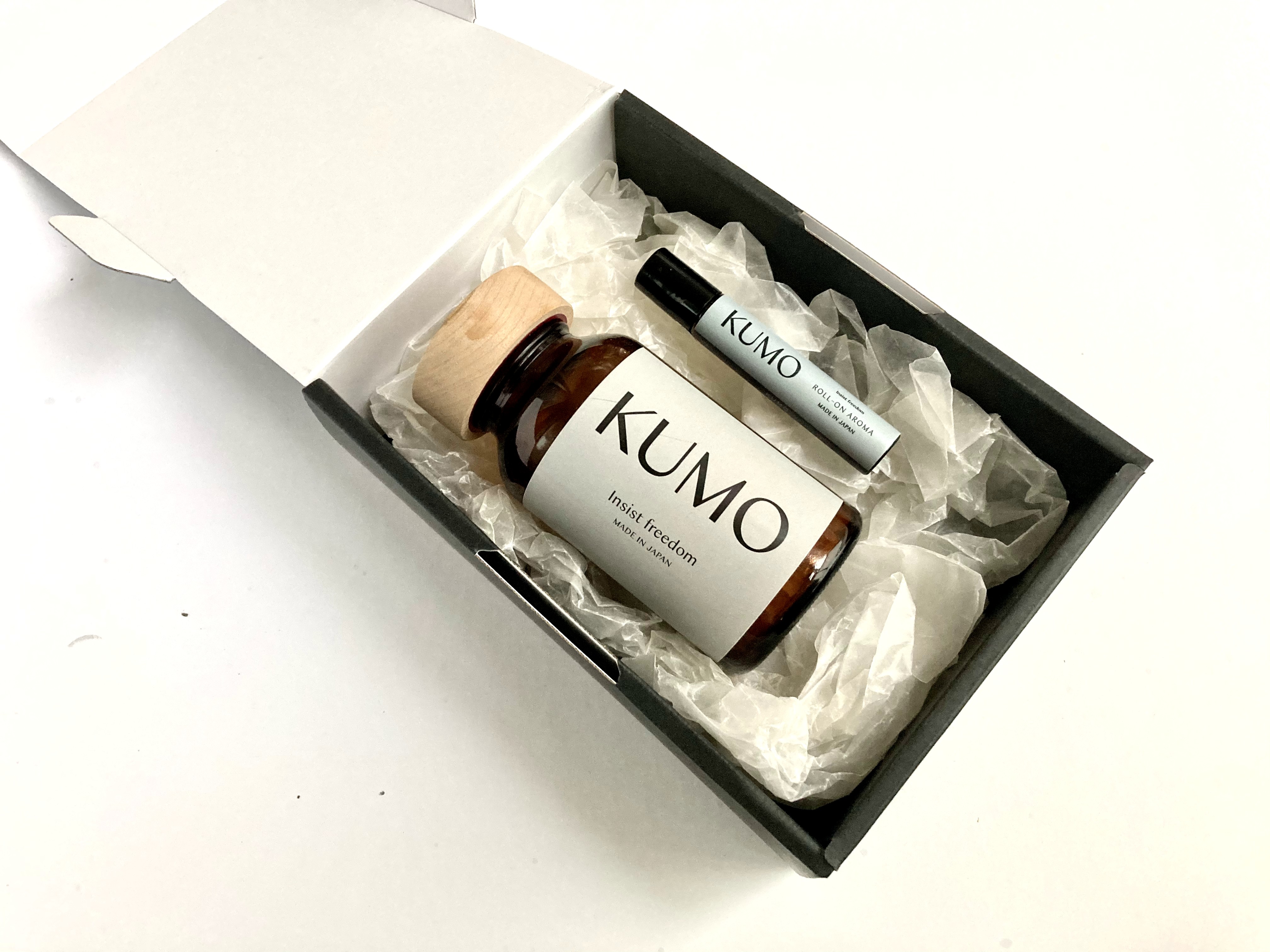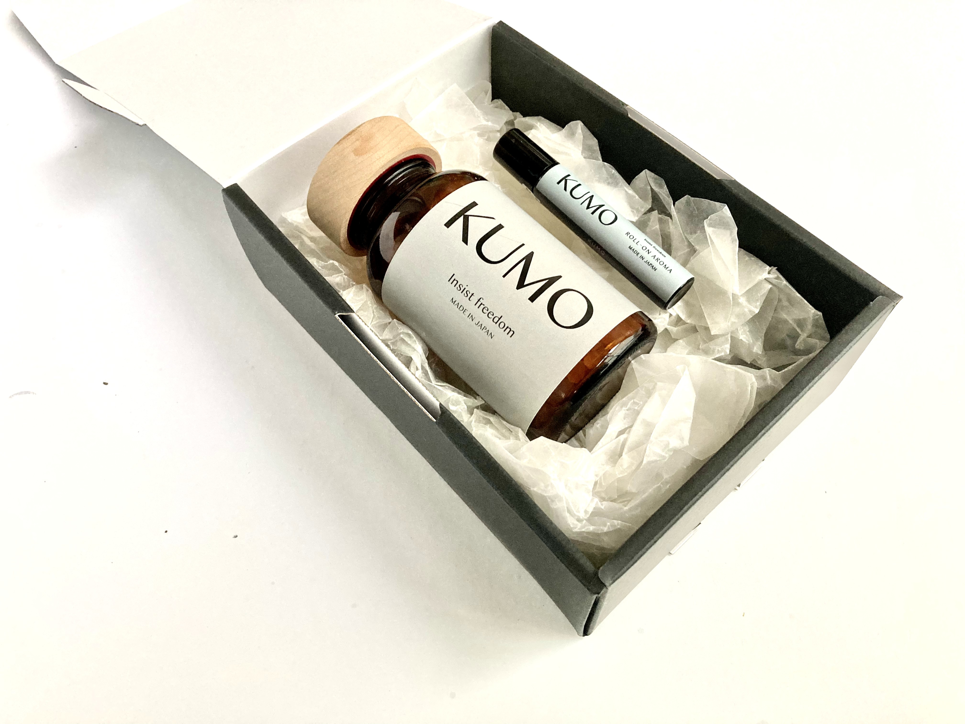 2021年4月から始まったアロマブランド「KUMO」 爽やかな目覚めるような香りは、男女問わず、20代〜50代の方に愛されています。 平凡な毎日に香りをプラスすることで、特別な1日になるように、このブランドが生まれました。あなたの生活に寄り添う香りでありたいと思っております。
