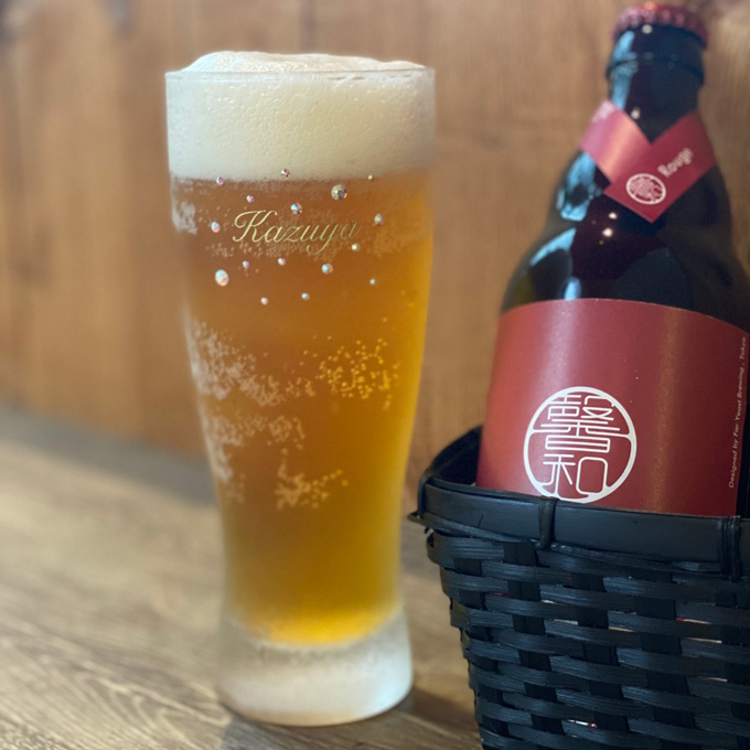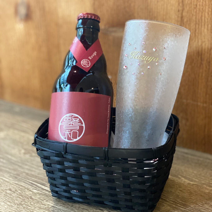 そんな特別なグラスには特別なビールを。ビール好きなスタッフが色々調べてようやく選んだクラフトビールKAGUAは「和が馨る」というコンセプトのもと試行錯誤を繰り返し、知識と経験、そして好奇心を兼ね備えた数少ない作り手としてベルギーのゲント郊外の醸造家とコラボした特別なビールです。普段自分では買わないけどもらって嬉しい、そんな上質なビールはお祝い事にぴったりの紅か白をお選び頂けます。