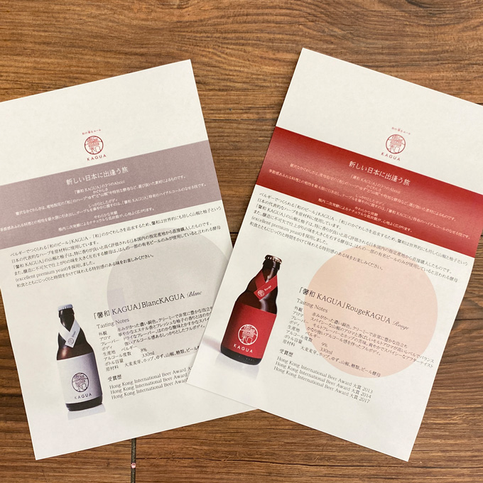 お選びいただいたお色のKAGUA説明書をお入れします。飲む前にもっとワクワクできてよりビールが楽しめます。