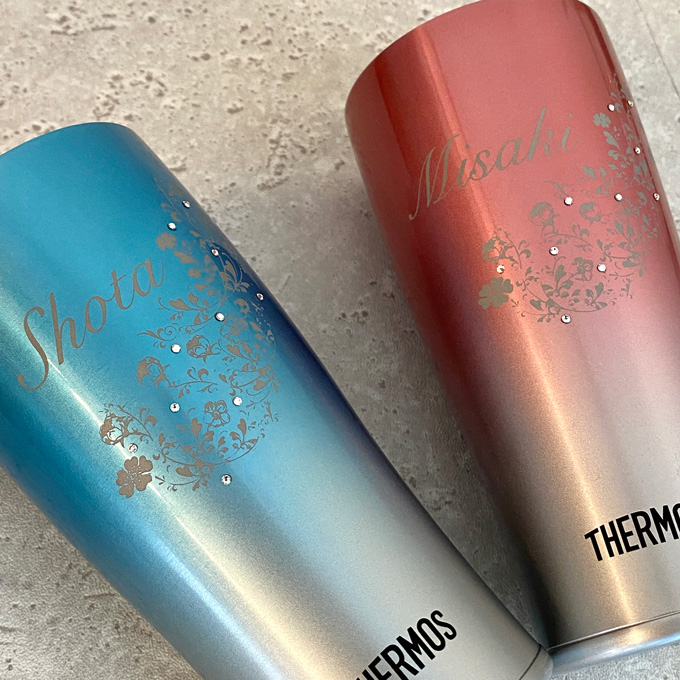 自分の名前とオリジナルのメッセージ入りのタンブラーは特別感があり、愛情がたっぷりと伝わるギフトになります。いつものお酒や飲み物がもっと美味しく飲めそうですね!ペアセットですので、結婚祝いのプレゼントやご両親へのギフトにおすすめです。