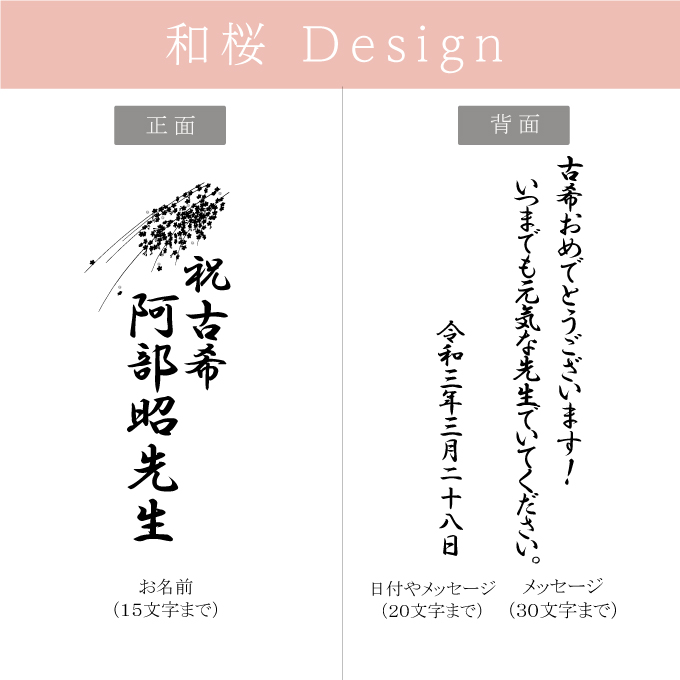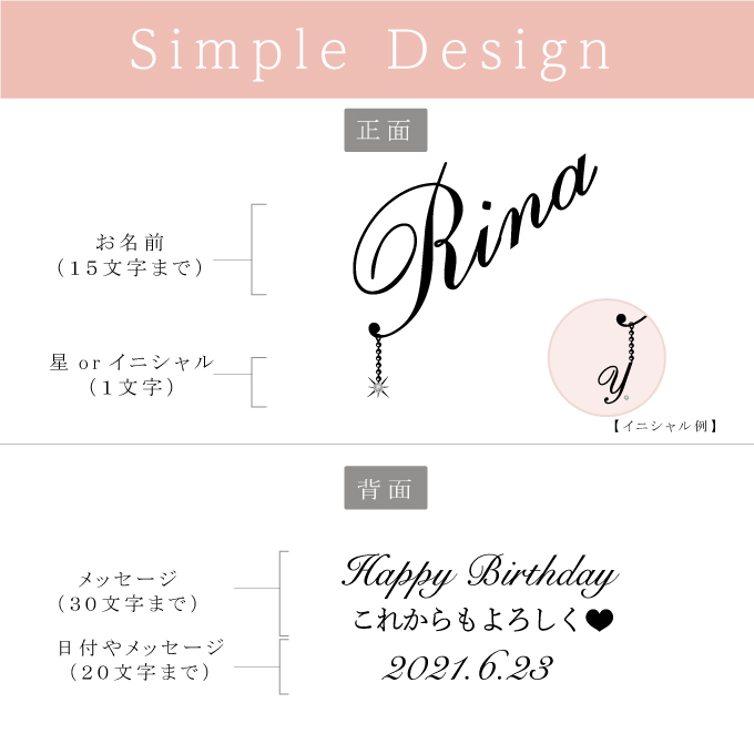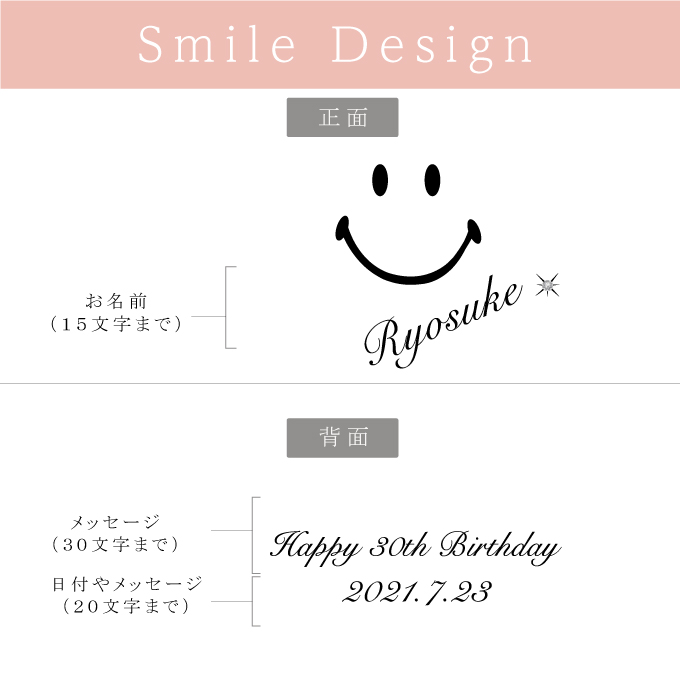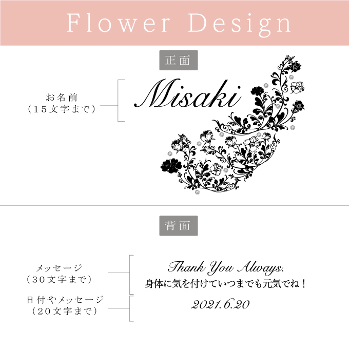 | オプション | 名入れ彫刻(無料) 1.お名前15文字迄 2.メッセージ30文字迄 3.日付等 20文字迄 |