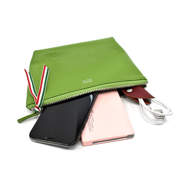 高級感漂うコンパクトポーチ。イタリアならではの発色の良さも魅力です。全5種類から贈る方にぴったりのカラーをお選びいただけます。大切な方への贈り物にぜひ、いかがでしょうか。