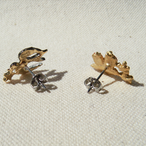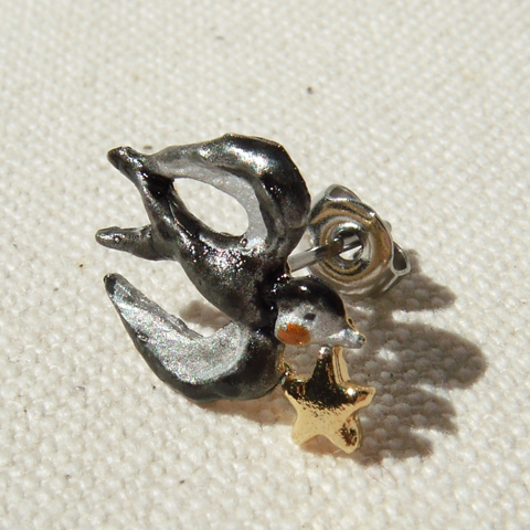 大口注文・法人のお問い合わせはこちらお星さまを乗せたつばめと、小花とイチゴをモチーフにしたピアスです。幸福の王子のおともだちのようにみんなに幸せを運んでいます。みんなが幸せになりますように。そんな願いが込められています。