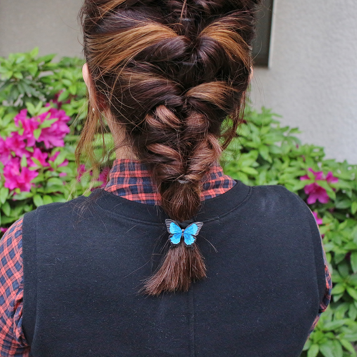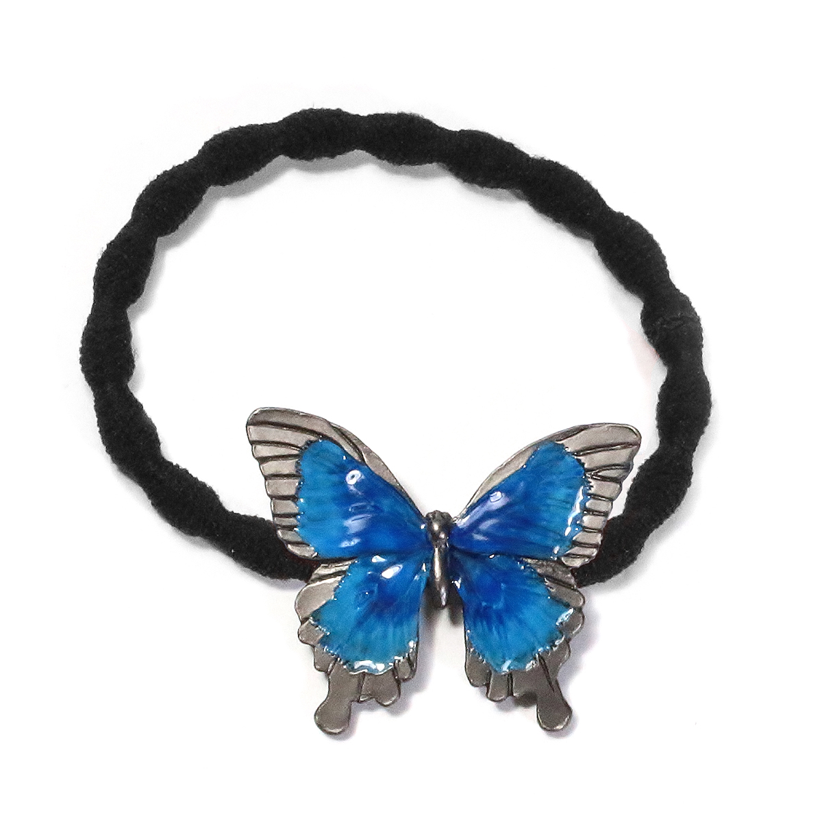 大口注文・法人のお問い合わせはこちら夜空を映したような深いブルーが印象的な蝶「オオルリアゲハ」をモチーフにしたヘアゴム。オオルリアゲハシリーズの中でも蝶のサイズが最も大きく、よりリアルなディティールに仕上がりました。印象的なカラーに仕上げるため、複数のブルーを使用して深いグラデーションを表現しています。 熱帯雨林に生息するオオルリアゲハ。美しい青色の翅は宝石のようにキラキラとした輝きを放ち、ひと目見ただけで幸せが訪れそう。黒髪の上で艶やかに舞わせてほしいアイテムです。