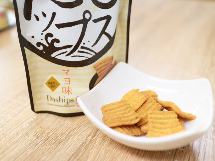 大口注文・法人のお問い合わせはこちら原料のおからと小麦粉などすべて国産を使っている、体に優しいお菓子。あげている油も圧搾一番搾りのなたね油を使用しているなど、こだわりをぎゅっと詰め込んだ「だしップス」。 “子供も大人もくせになるっ!”「しお・マヨ・醤油・わさび」4 種の風味ご用意しました。