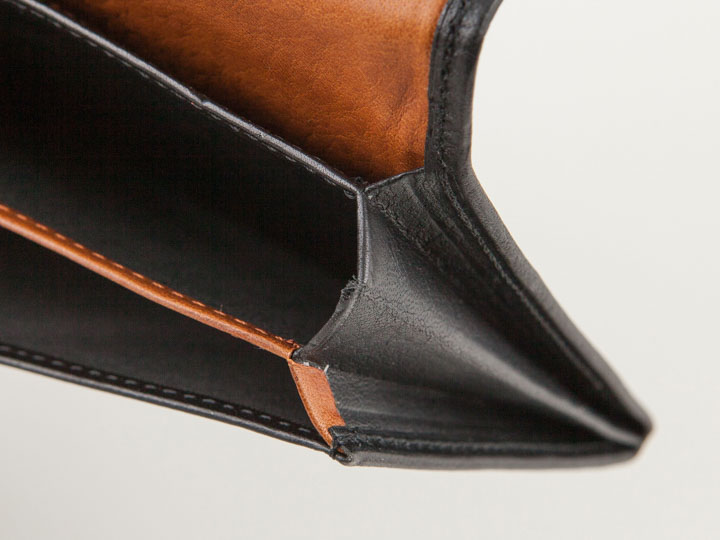 一万円札を折らずに収納できる極限のサイズまで縮小し、 さらに薄さも実現させるべく「風琴マチ」技法を採用。 「風琴マチ」は折り紙から考え付かれた技法であり、 マチを蛇腹のように仕上げる日本独自の伝統製法で 限られた職人のみが継承しています。 スリムな見た目でも抜群の収納力がポイントです!