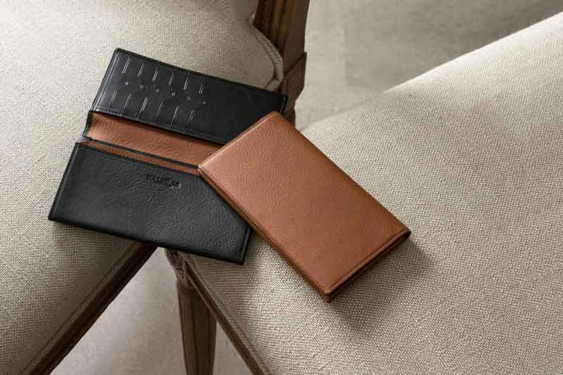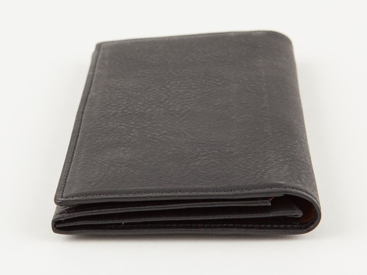 耐久性に優れたイタリアンシュリンクレザーを使用したスタイリッシュな財布です。一万円札がちょうど収まるサイズのスリムな見た目ですが収納力も抜群。カードケースやポケットも充実しています。お色はTobaccoとBlackの2色からお選びいただけます。