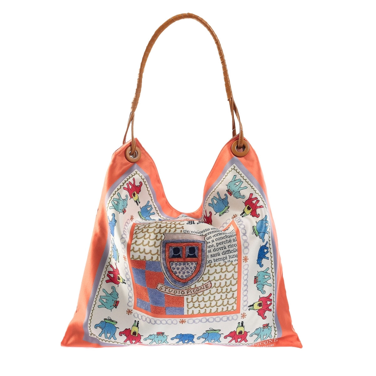 大口注文・法人のお問い合わせはこちら人気のスカーフ柄バッグの新作シリーズです。 長めの持ち手で肩から掛けて使えます。 柄のひとつひとつに、司祭がいる「PICONE(ピッコーネ)」らしい遊び心のあるグラフィックと、ファッションのアクセントになるカラーが特徴的。 裏地付きで内ポケットもついているので、機能的に使えます。