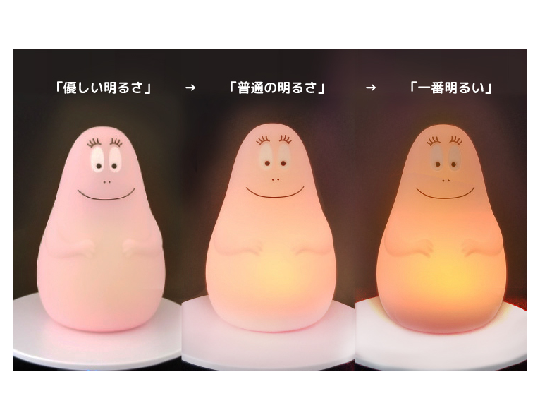 夜間の授乳や夜ベットに入って読書をする時、クリスマスなどのイベントやキャンプ、お祭り等野外イベントなど様々なシーンで大活躍。玄関に置いても楽しめます。毎日、家に帰るとバーバパパが優しく迎えてくれますよ。