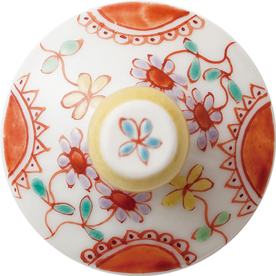 脚部分のデザインは九谷焼の名工と謳われた初代文吉の色絵技術を受け継ぎ、明るい色彩、可愛らしい上絵付で人気の銀舟さんです。