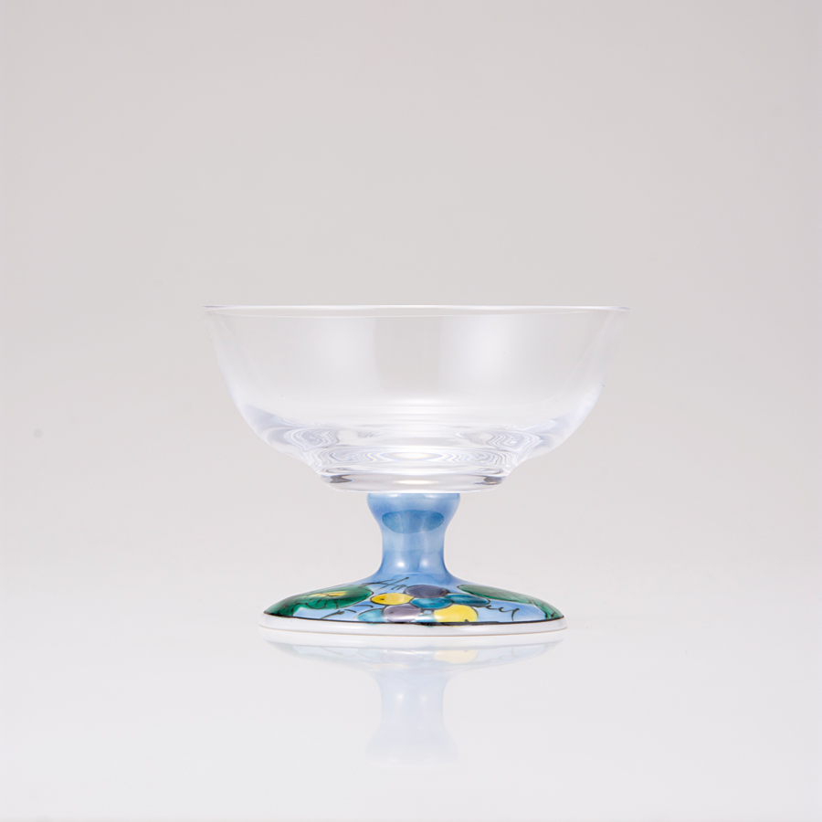 国内生産にこだわり作製された“デザートグラス”。こちらは九谷焼磁器と江戸硝子を融合させた逸品です。爽やかなブルーの化粧箱に入れてお届けしますのでお祝いの贈り物にもぴったり。高い技術で丁寧に作られたこだわりのグラスをぜひ、贈ってみてはいかがでしょうか。