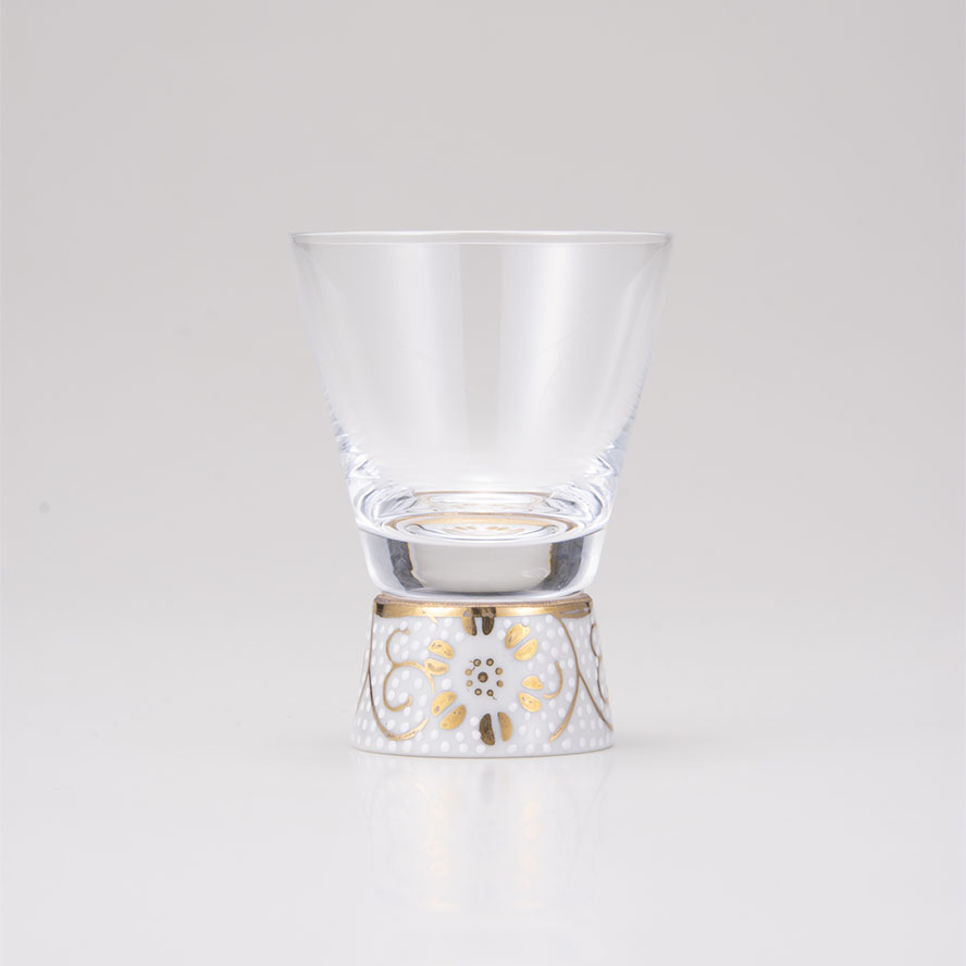 大口注文・法人のお問い合わせはこちら九谷焼磁器と手作りの吹き硝子(江戸硝子)を独自の技術により融合させた九谷和グラスシリーズのショットグラスをペアでお届けします。 2006年度グッドデザイン賞(新領域デザイン部門)受賞商品です。 九谷焼で出来た脚部分もガラスもすべて手作りで、国内生産にこだわり作製しております。 お気に入りのお酒とともにお楽しみいただきたいグラスです。 脚部分は大正元年に確立され九谷焼を代表するデザインとなった「白粒鉄仙(しろちぶてっせん)」と「青粒鉄仙(あおちぶてっせん)」。 100年以上もの時を経て、今もなお高い人気を誇っています。