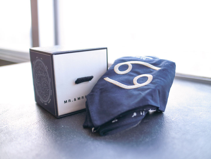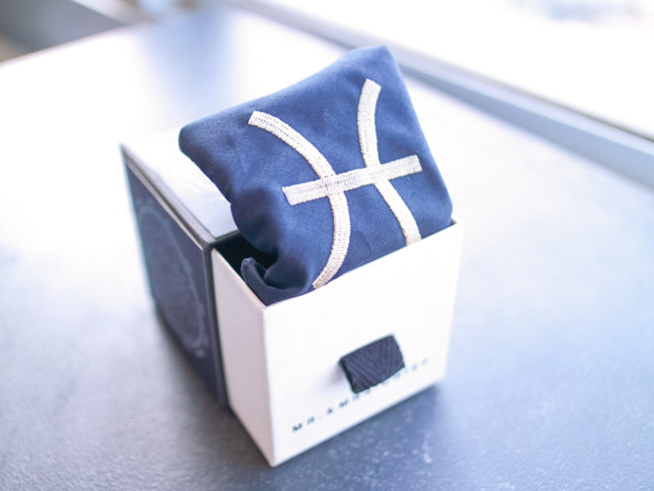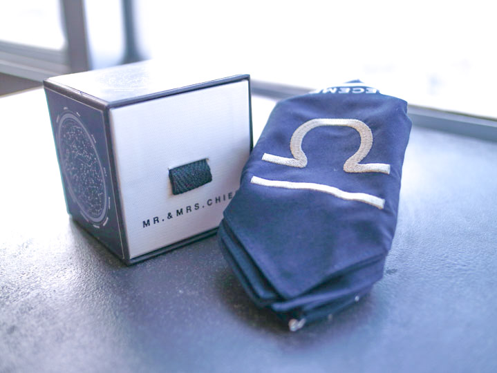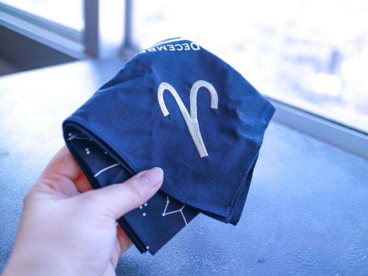 ハンカチを広げるとプラネタリウムの天空のようなイラストが描かれている、とってもロマンティックな「星座ハンカチ」。ラインナップは全部で12種類。あの人にはこれ、この人にはそれ……とみんなにプレゼントしたくなる商品です。自分の星座はもちろん、ほかの星座も欲しくなっちゃうくらいアイテムです。