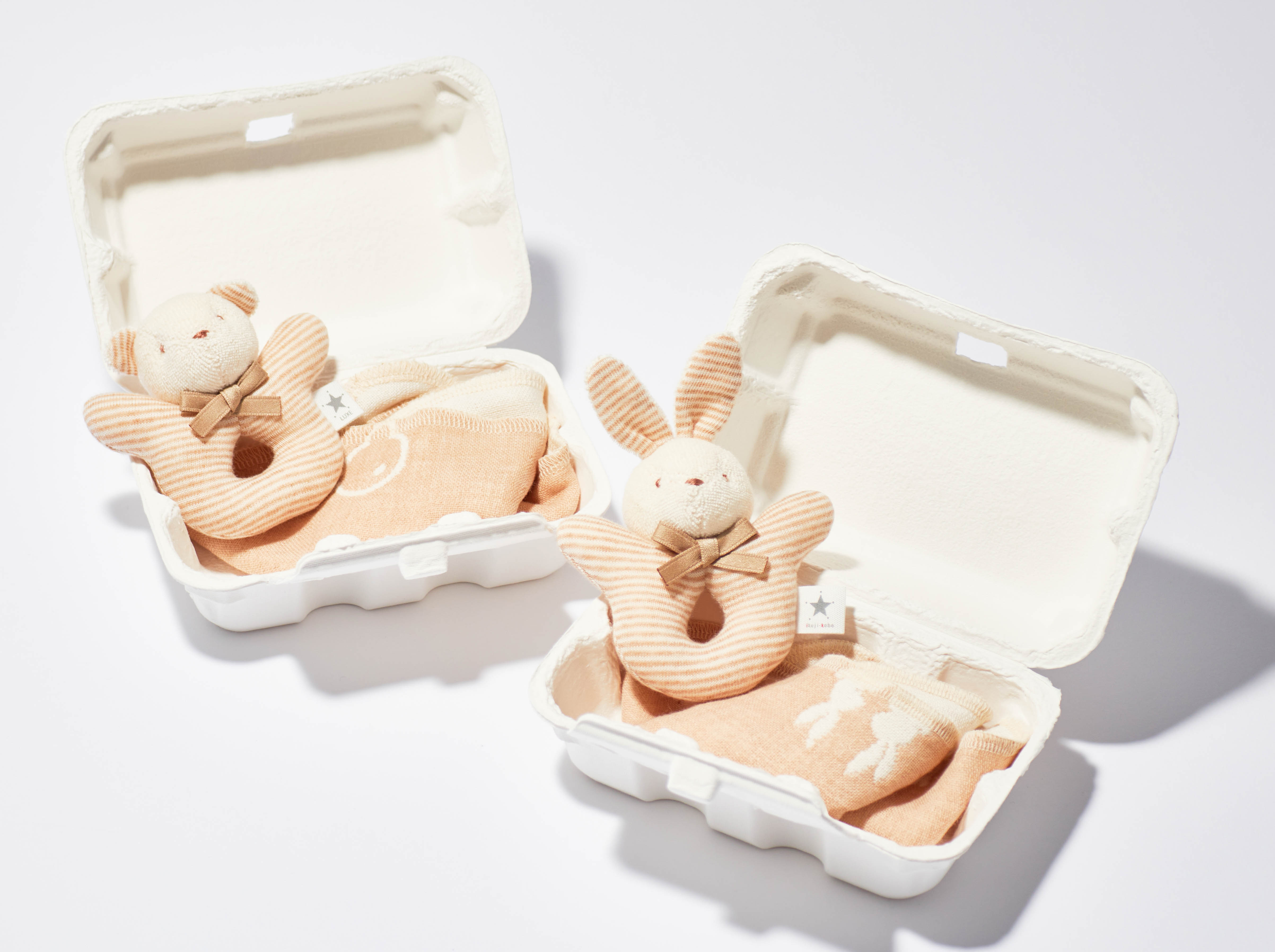 気持ちよくも快適でしかも安心な素材で作られている、「育児工房」のベビー用品です。今回は、“にぎにぎセット”をご用意しました。にぎにぎと素材にこだわったハンカチのセットで、「くま」と「うさぎ」の2種類からお選びいただけます。