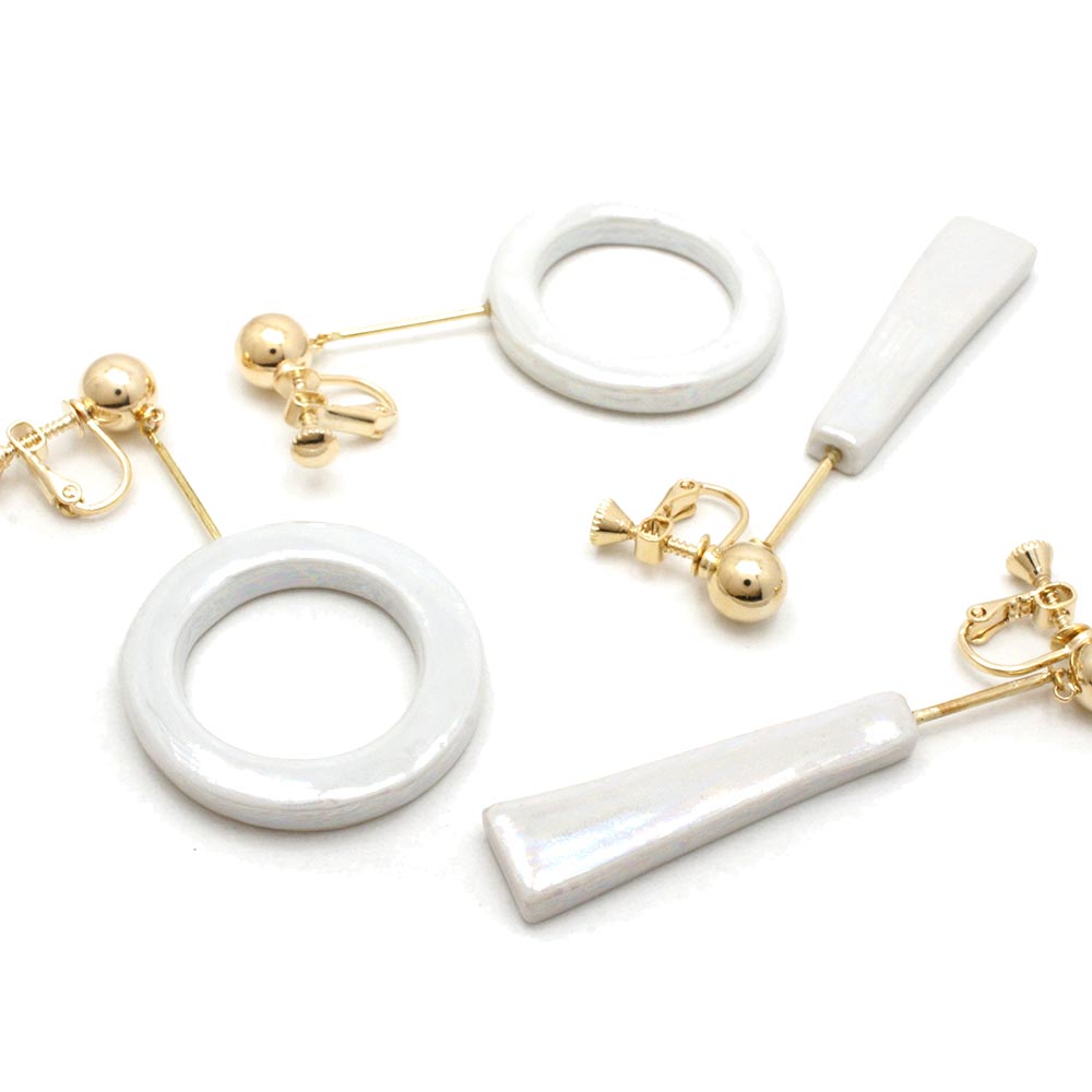 日々を楽しく、自分らしく生きる女の子たちのためのアクセサリーブランド「gargle(ガーグル)」のイヤリングです。有田焼の表面にオーロラの釉薬を使用しており、光のあたり方で色味が変わるのが特徴。メタルとオーロラカラーの組み合わせが耳元を上品にしてくれます。