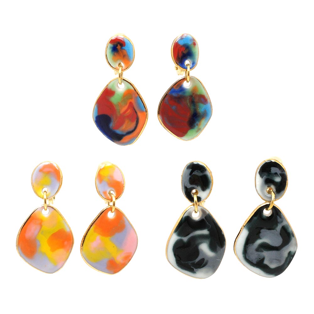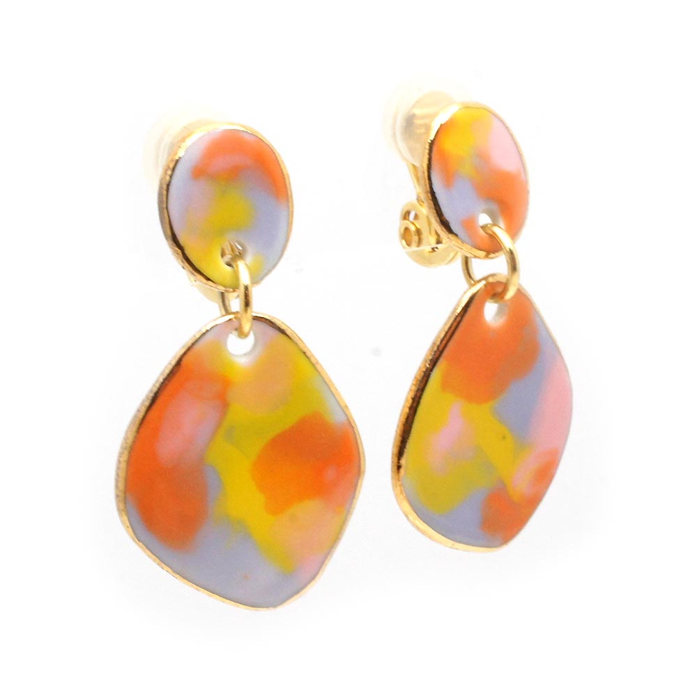 日々を楽しく、自分らしく生きる女の子たちのためのアクセサリーブランド「gargle(ガーグル)」のイヤリングです。七宝焼き風の色合いやツヤのある質感を表現しました。厚みを薄く作っている為、軽くて付けやすいアクセサリーになっています。