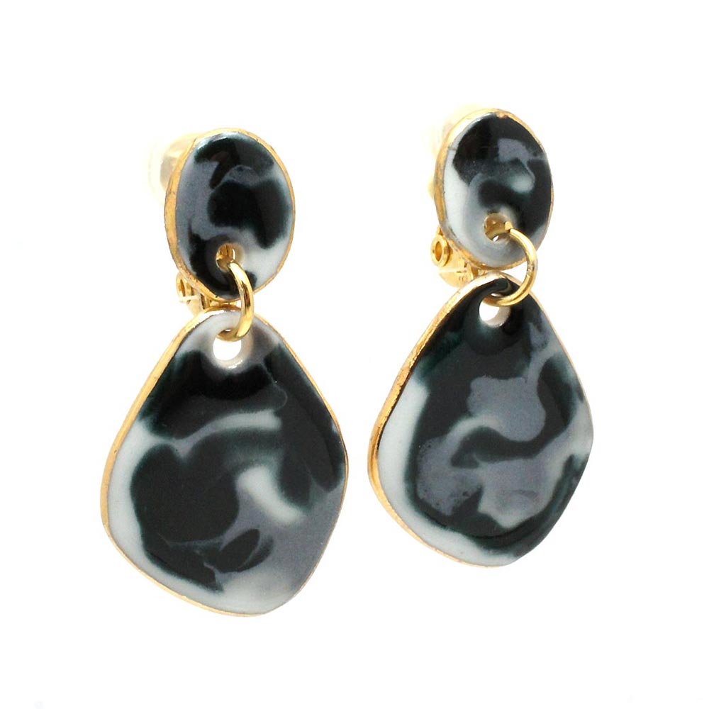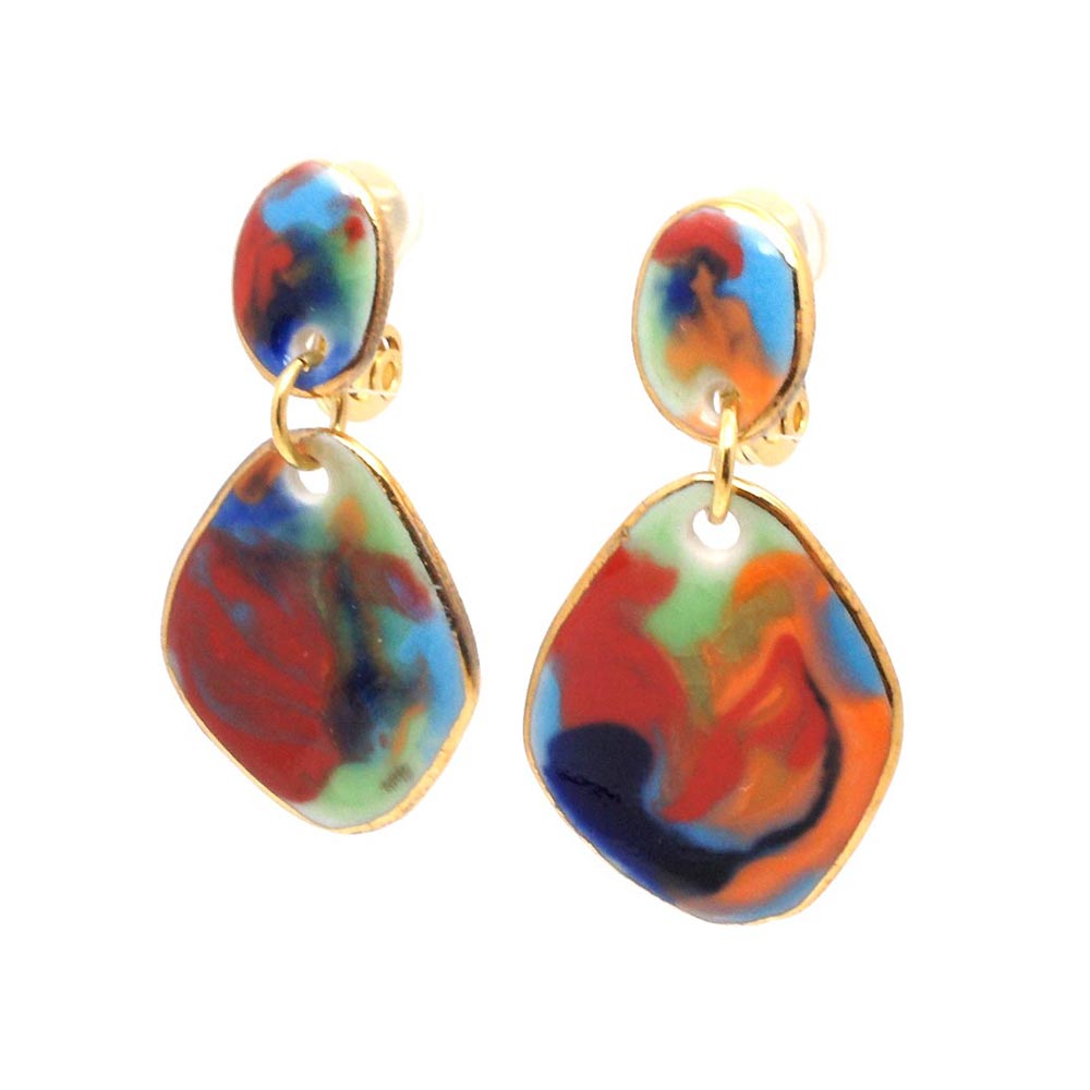 大口注文・法人のお問い合わせはこちら自分らしく生きる女の子たちのためのアクセサリーブランド「gargle(ガーグル)」の有田焼シリーズ。 七宝焼き風の色合いやツヤのある質感を表現したイヤリングです。耳が痛くなりにくいソフトクリップ金具を使用。 カラーはパステル、ビビッド、モノトーンの3種類。厚みを薄く作っている為、軽くて付けやすいアクセサリーになっています。